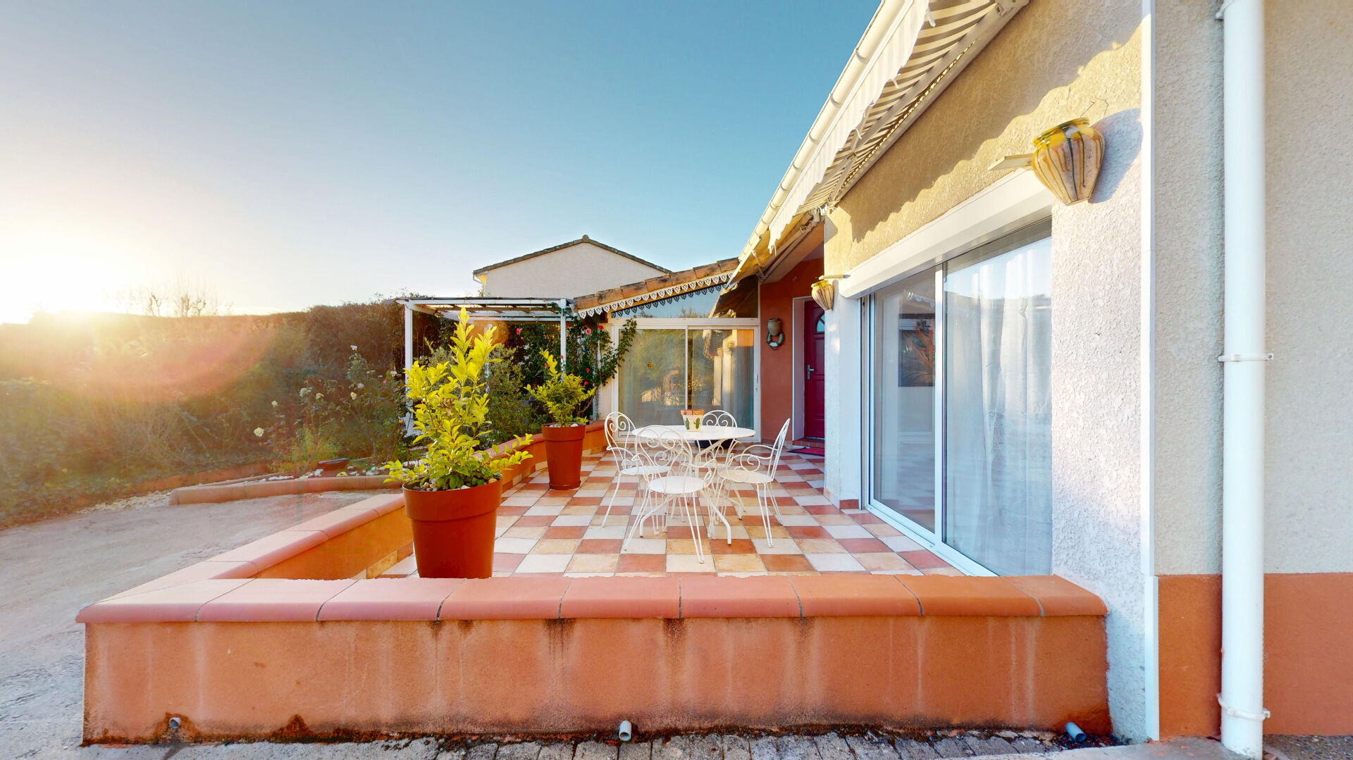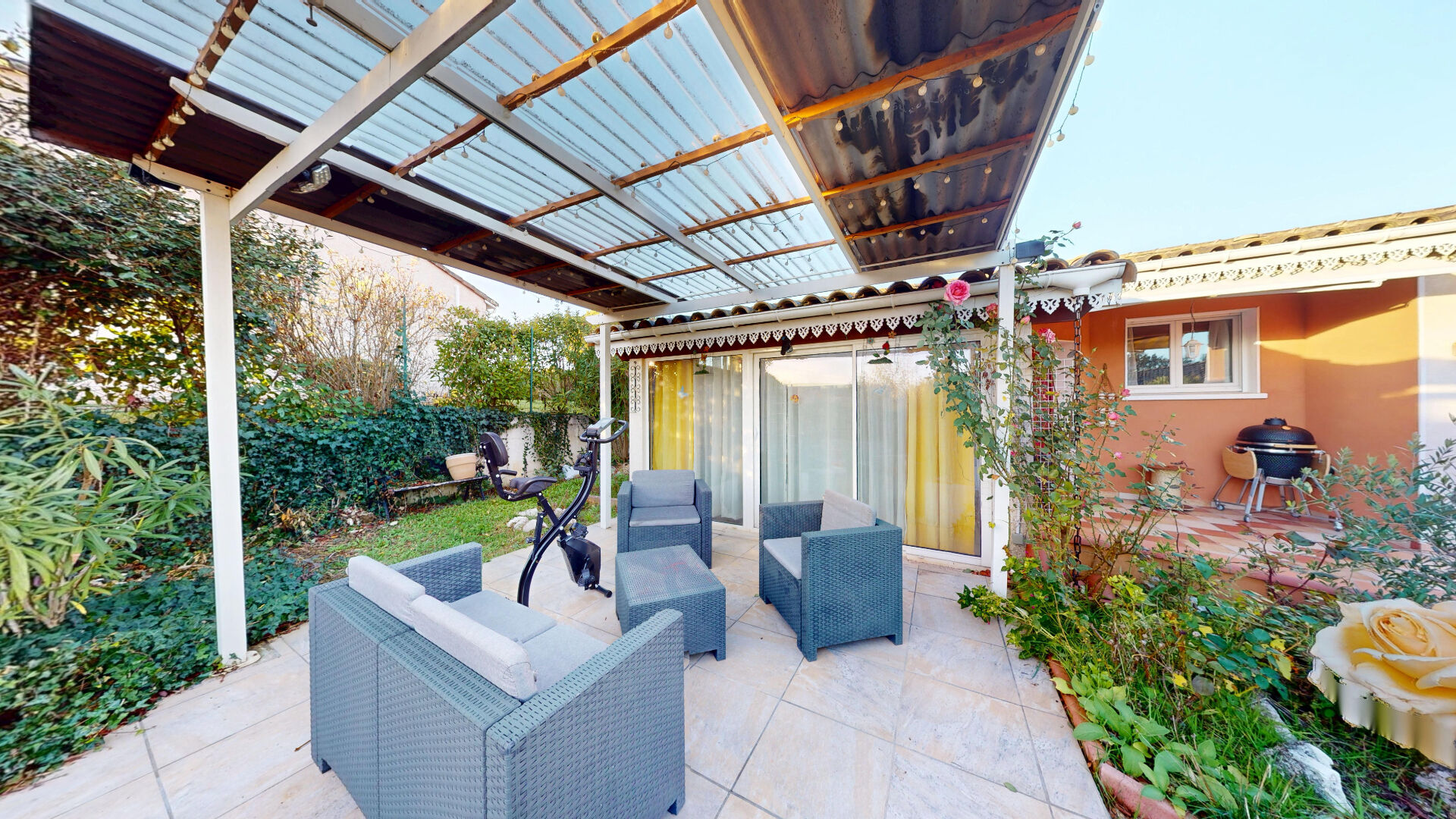 À l'extérieur, la terrasse ensoleillée invite à la détente et aux repas d'été. Le jardin est facile d'entretien, offre un bel espace de repos.