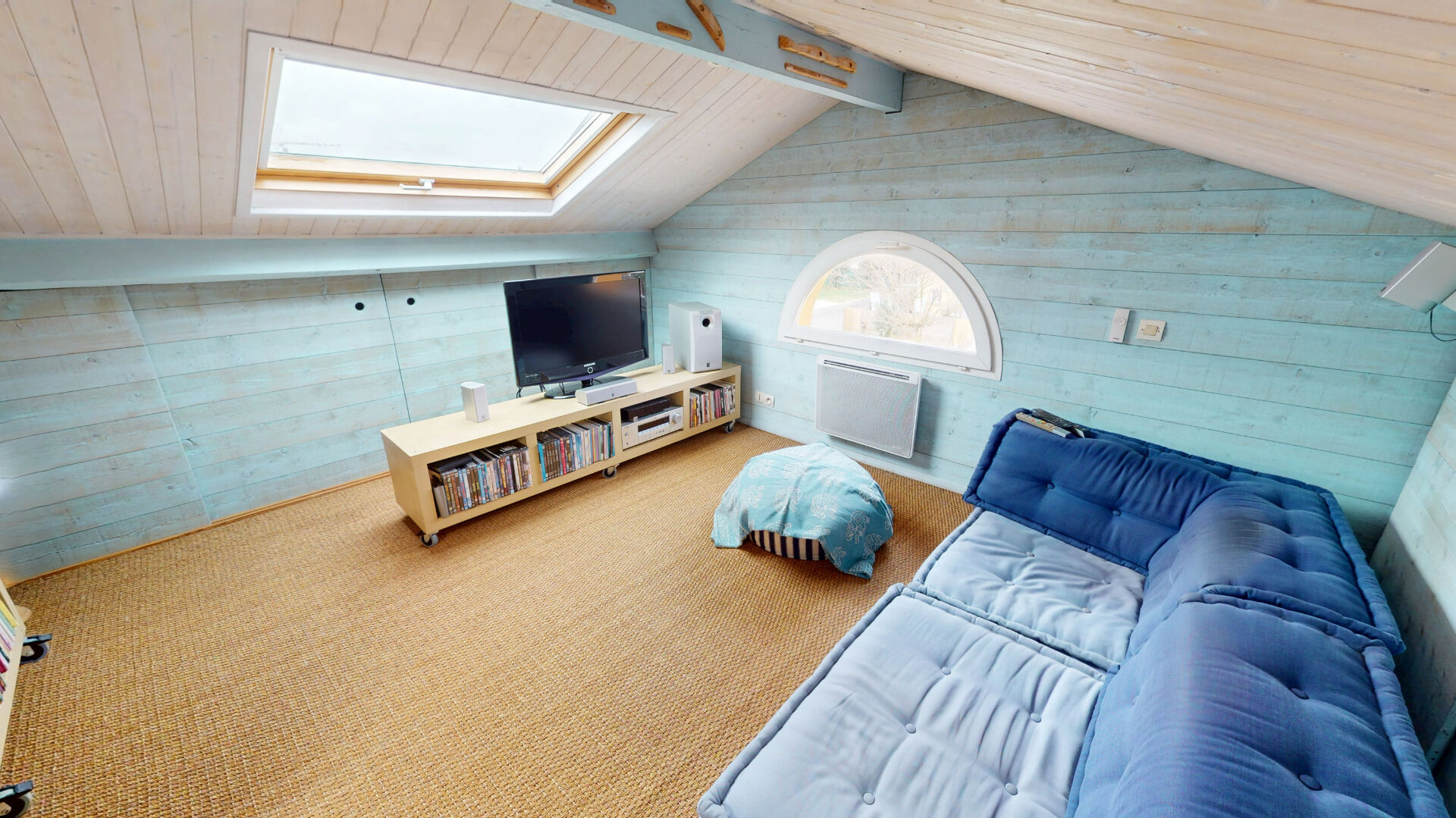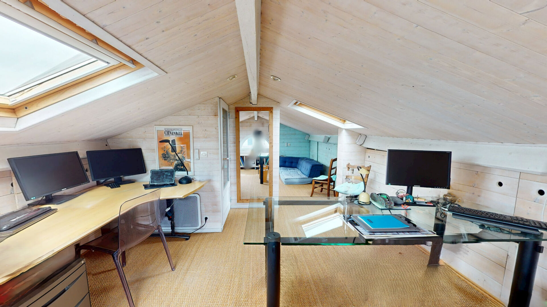 Un grand espace aménagé dans les comble en bureau et pièce télé actuellement de plus de 30 m2.