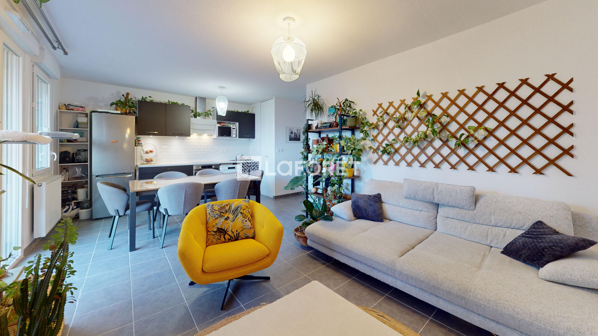 Espace de Vie Moderne : Une superbe pièce de vie intégrant harmonieusement un salon, une salle à manger et une magnifique cuisine ouverte, entièrement aménagée et équipée.