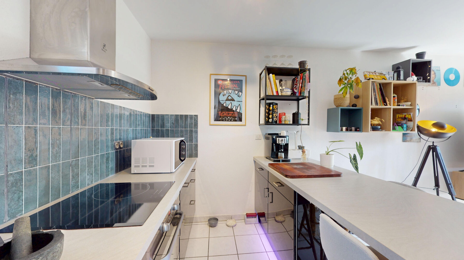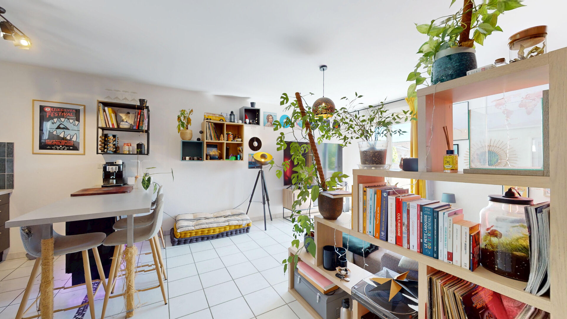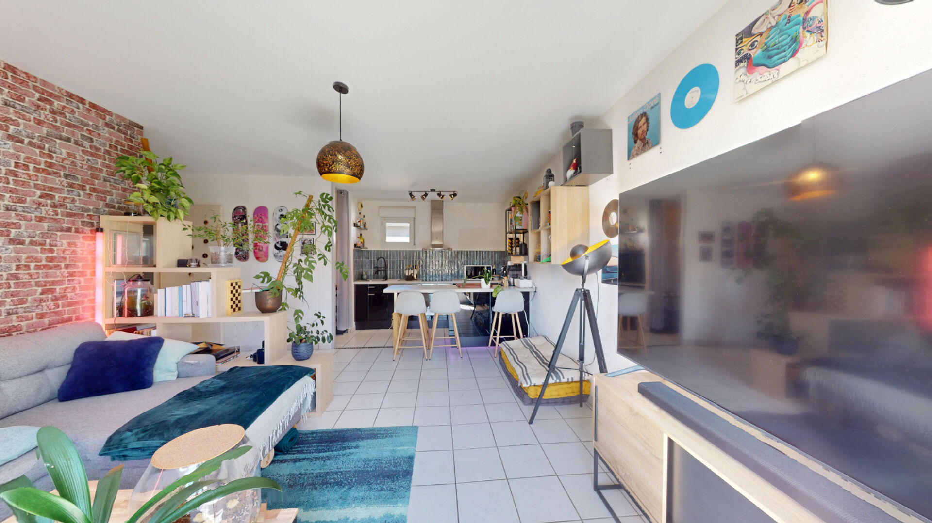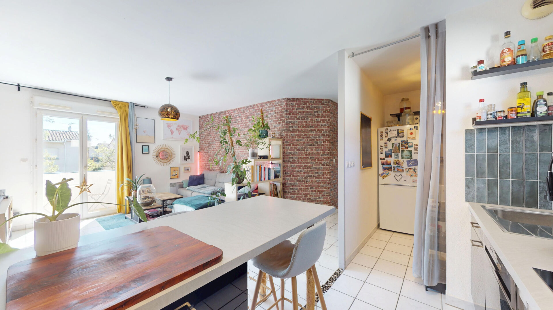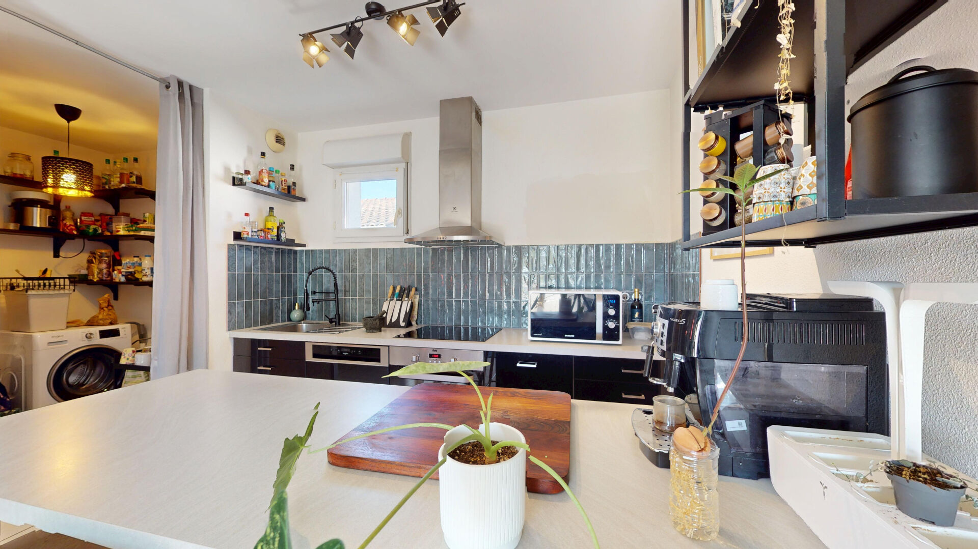 Dès l'entrée, vous êtes accueilli dans un espace soigné qui dessert harmonieusement l'ensemble du logement. La cuisine ouverte, moderne et entièrement équipée, un plan de travail et hotte se prolonge naturellement vers le salon-séjour , exposé plein sud-ouest. Baigné de lumière naturelle tout au long de la journée, ce dernier séduit par ses beaux volumes et son accès direct sur un balcon avec vue dégagée sur un quartier calme et arboré.