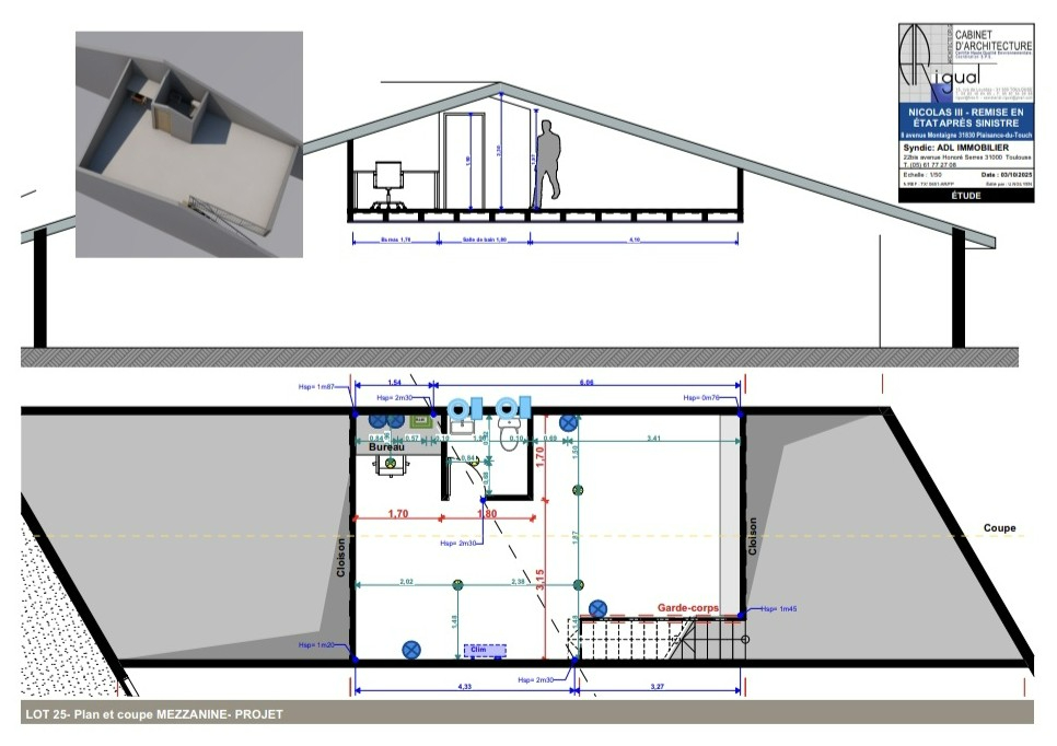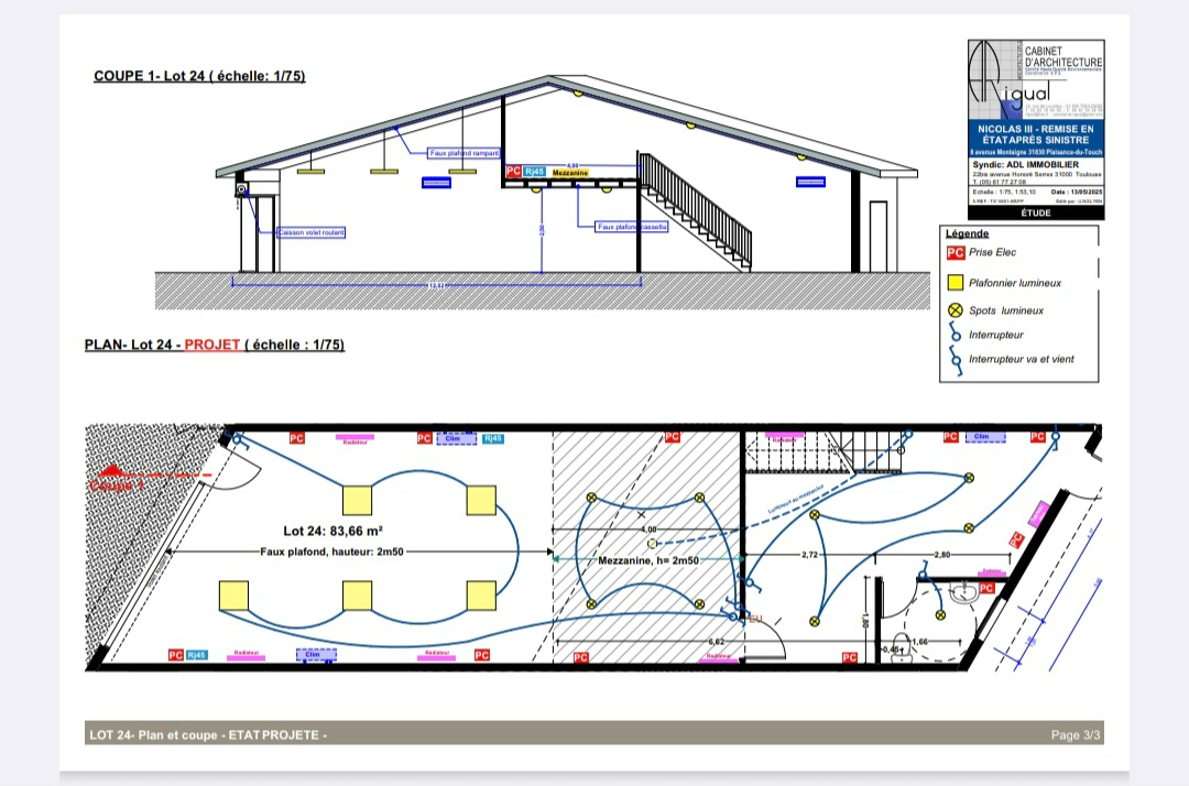Local commercial refait A NEUF situé à Plaisance du Touch, donnant sur une place composée de plusieurs commerces (restaurants, supermarché, bureau de tabac, salon de barbier, bijouterie, épicerie, etc.). Le local a une surface totale de 83,66 m² répartis en un premier grand espace et une arrière-boutique séparée par une cloison et une porte ; ainsi qu'une mezzanine supplémentaire avec un garde-corps en bois et une hauteur sous-plafond de 2,50m.