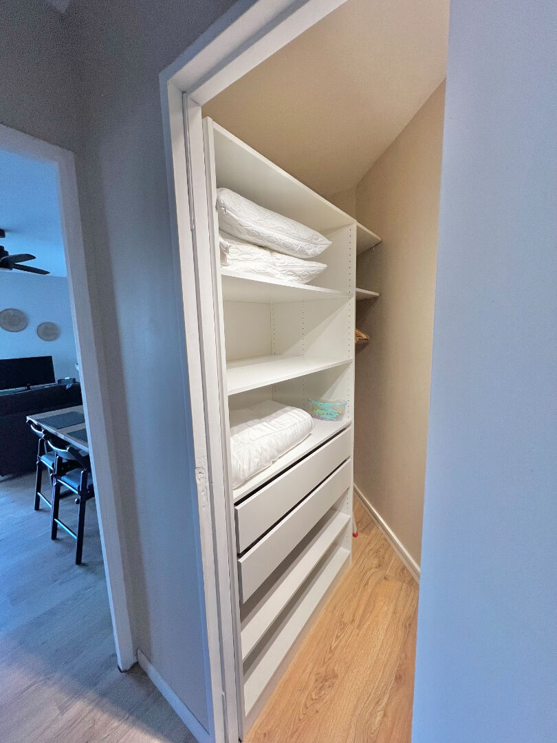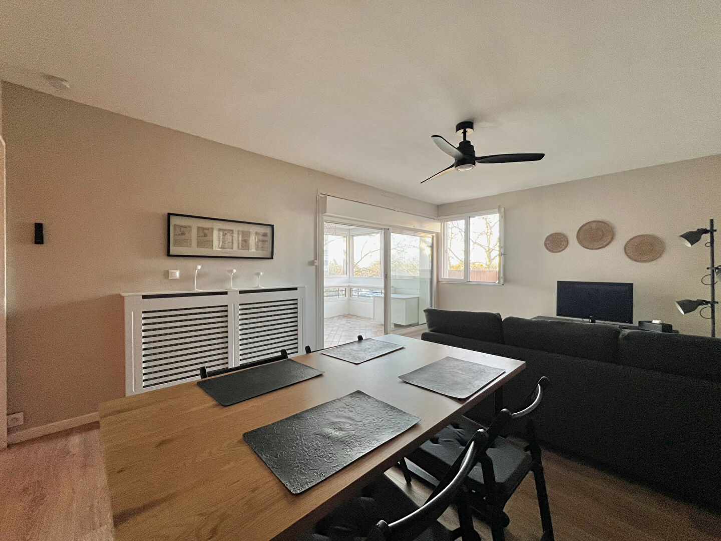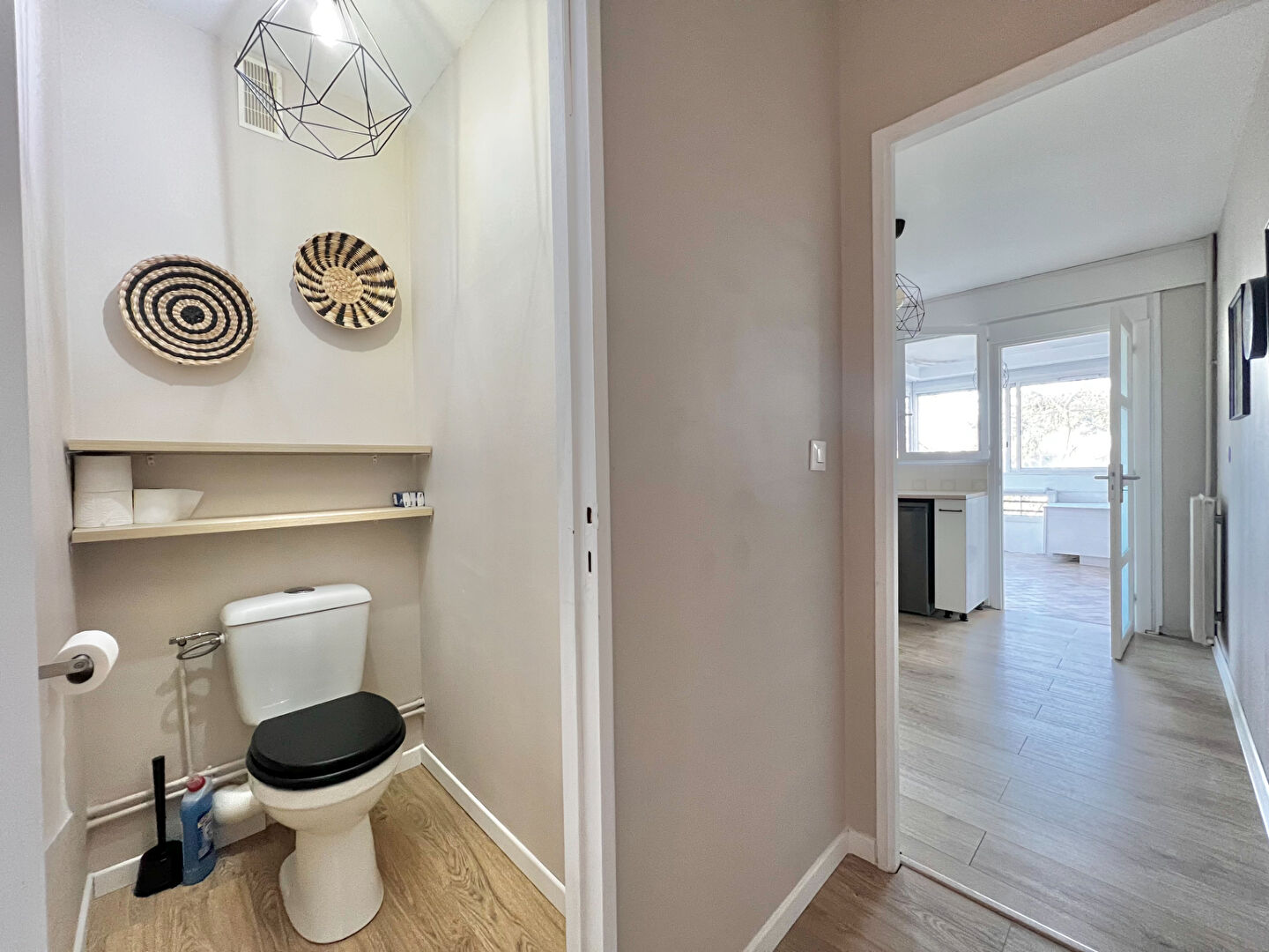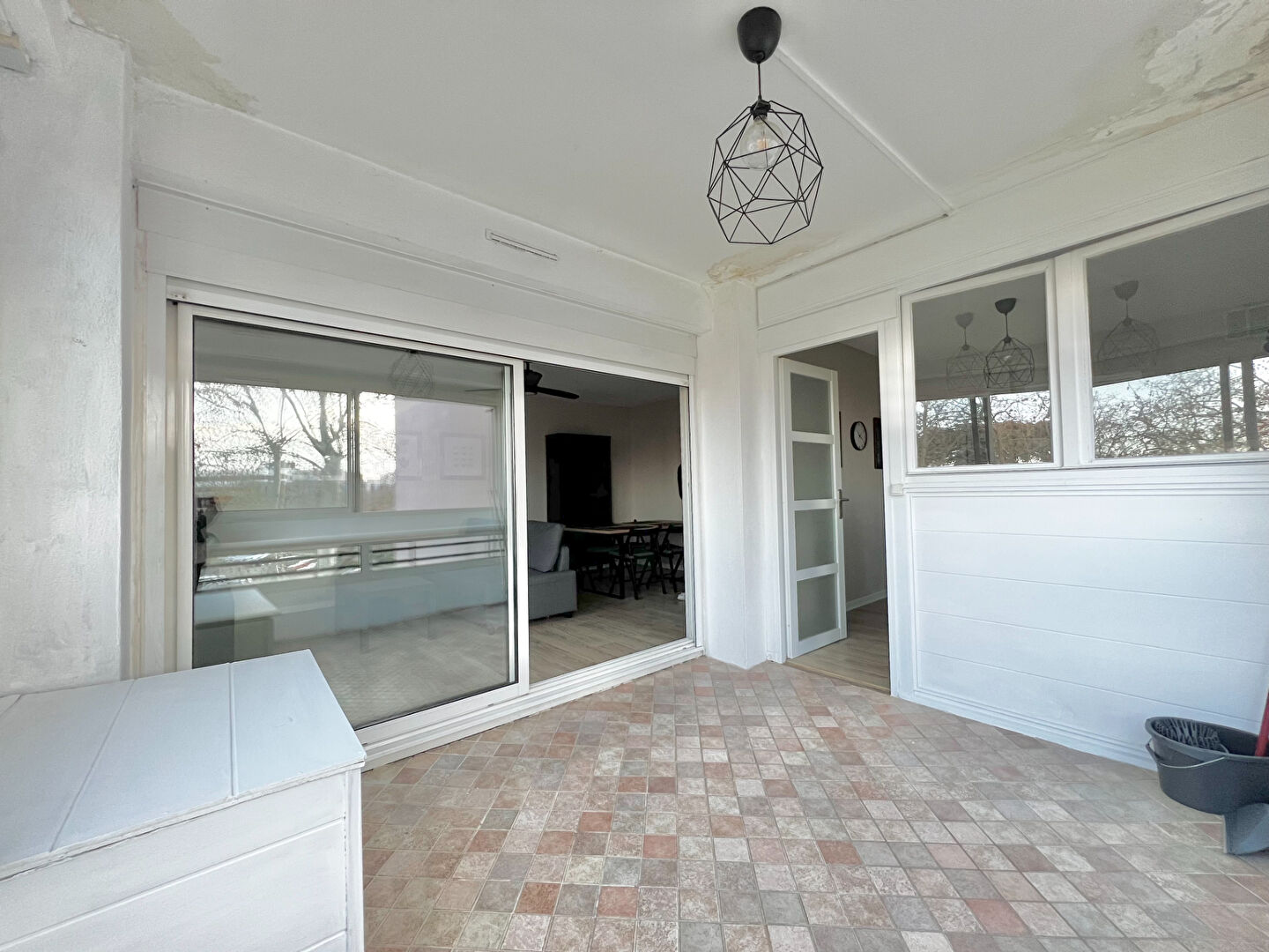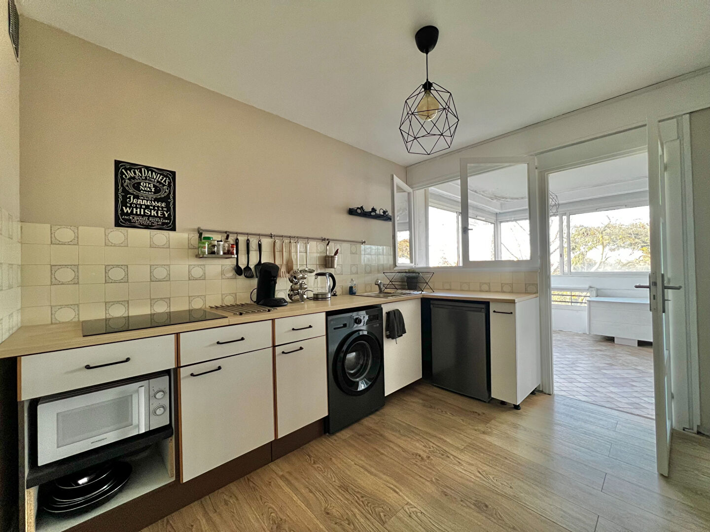 Ce grand T1 bis est composé d'une belle entrée desservant salle d'eau, WC, placard aménagé en dressing, cuisine avec cellier et séjour de plus de 20m². La terrasse couverte et fermée est un réel atout, elle permet d'agrandir l'espace de l'espace de vie de 10m² supplémentaires.