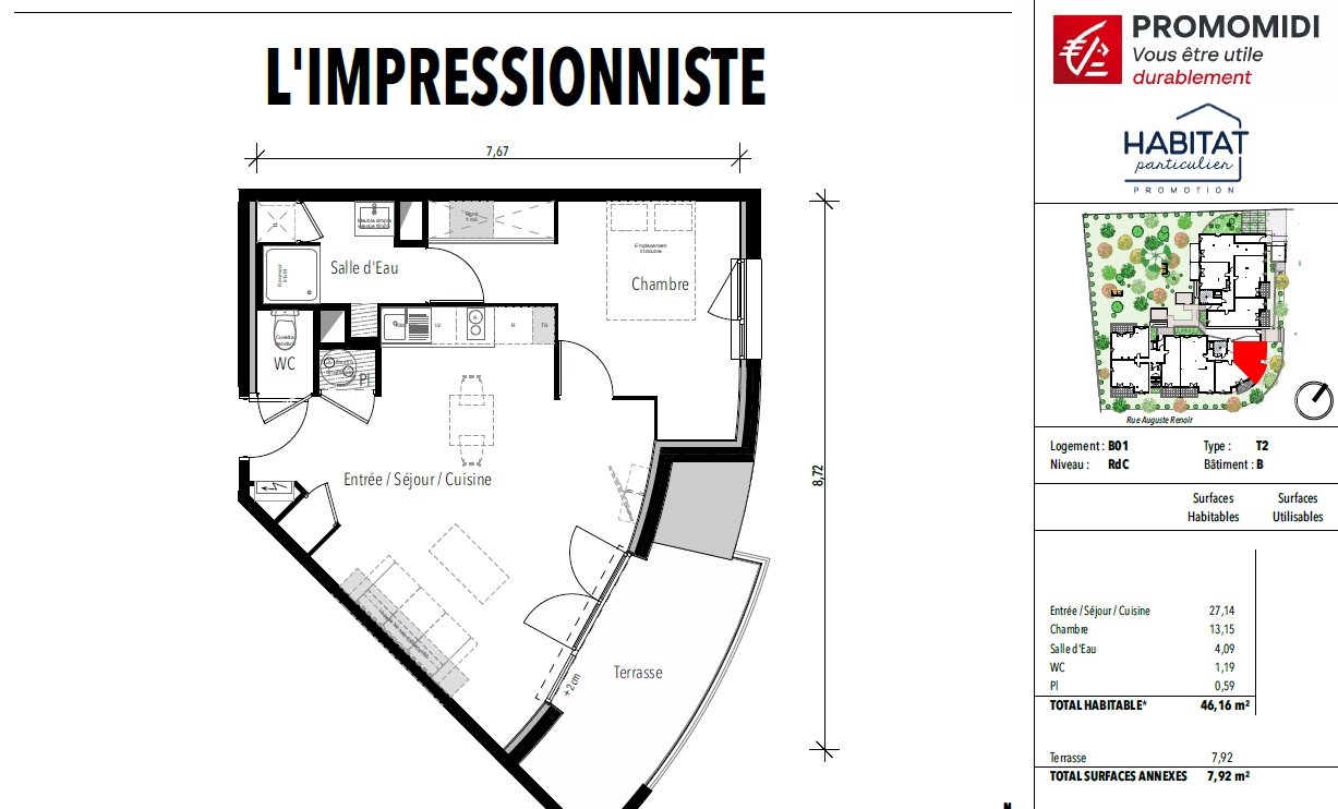 - Terrasse de 10,49m2 avec un vis-à-vis très discret