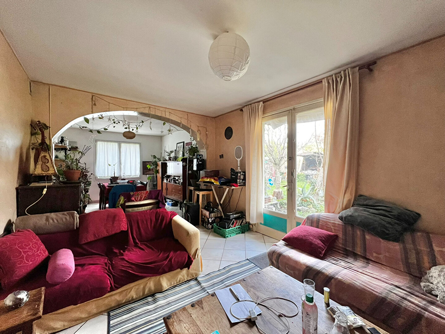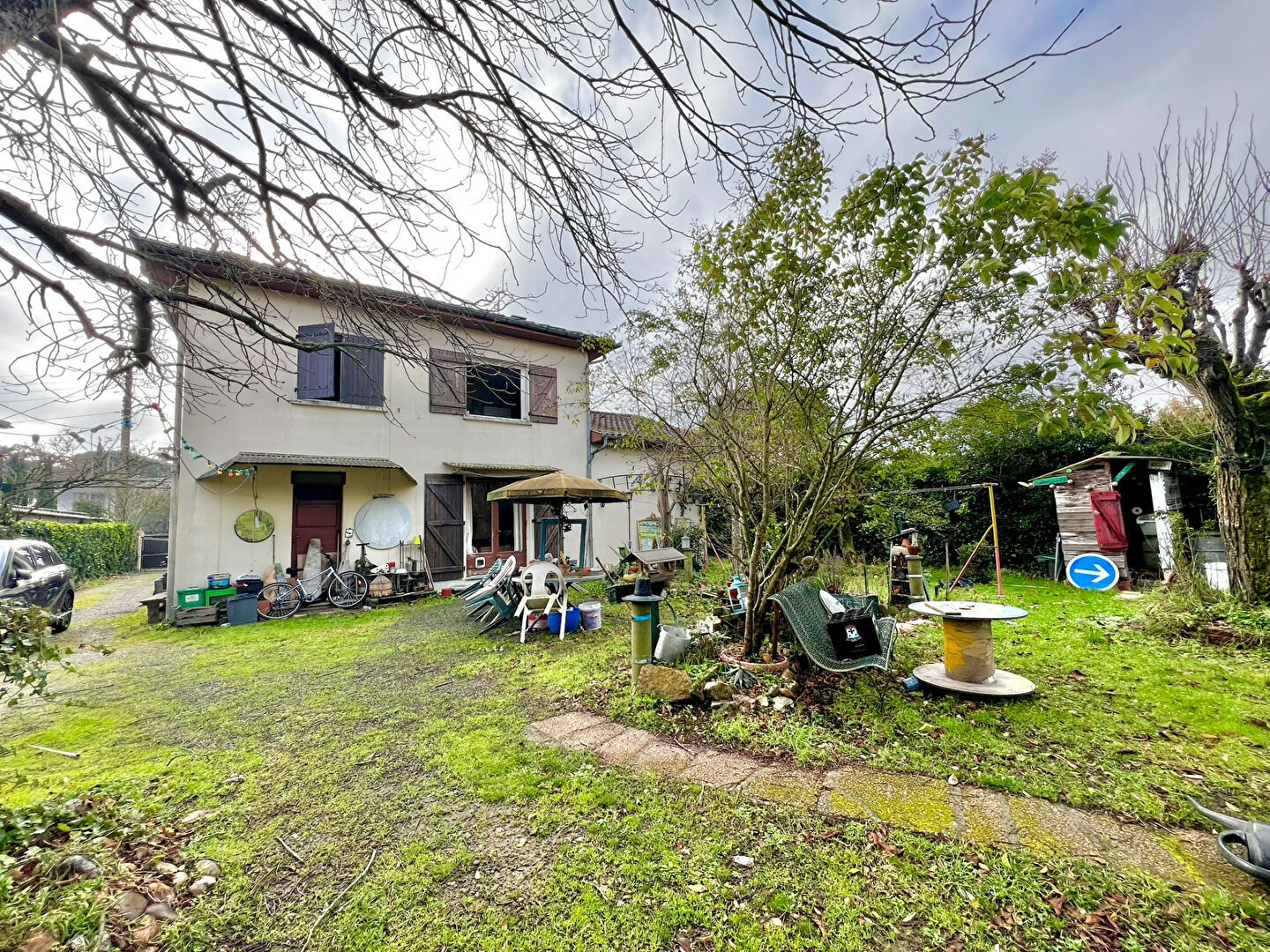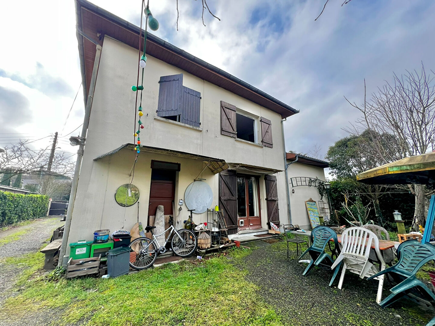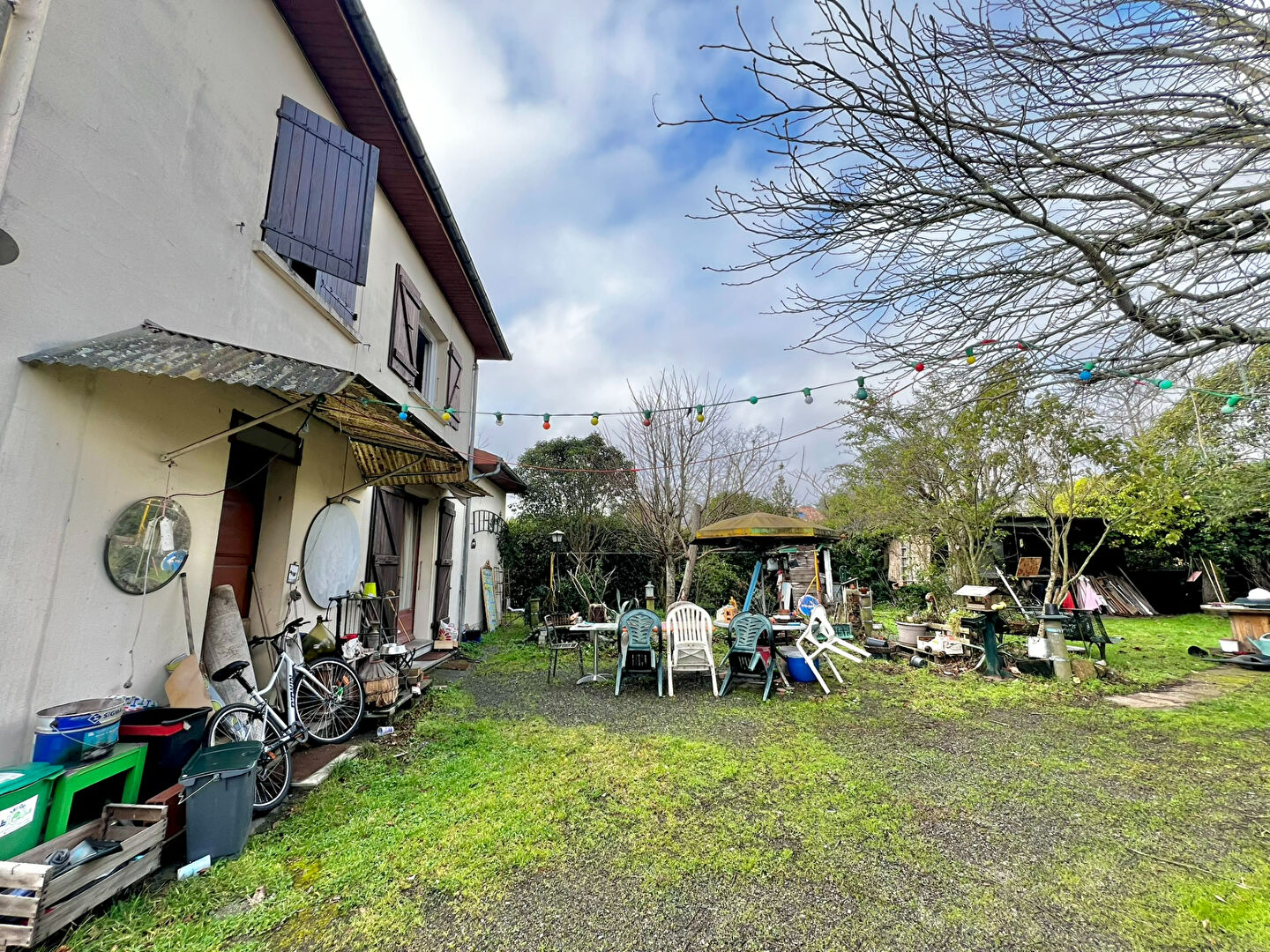 La maison est composée d'une entrée, desservant une buanderie, un WC, une cuisine fermée et un double séjour exposé Sud-Ouest. A l'étage, vous trouverez les 3 autres chambres et la salle d'eau commune.
