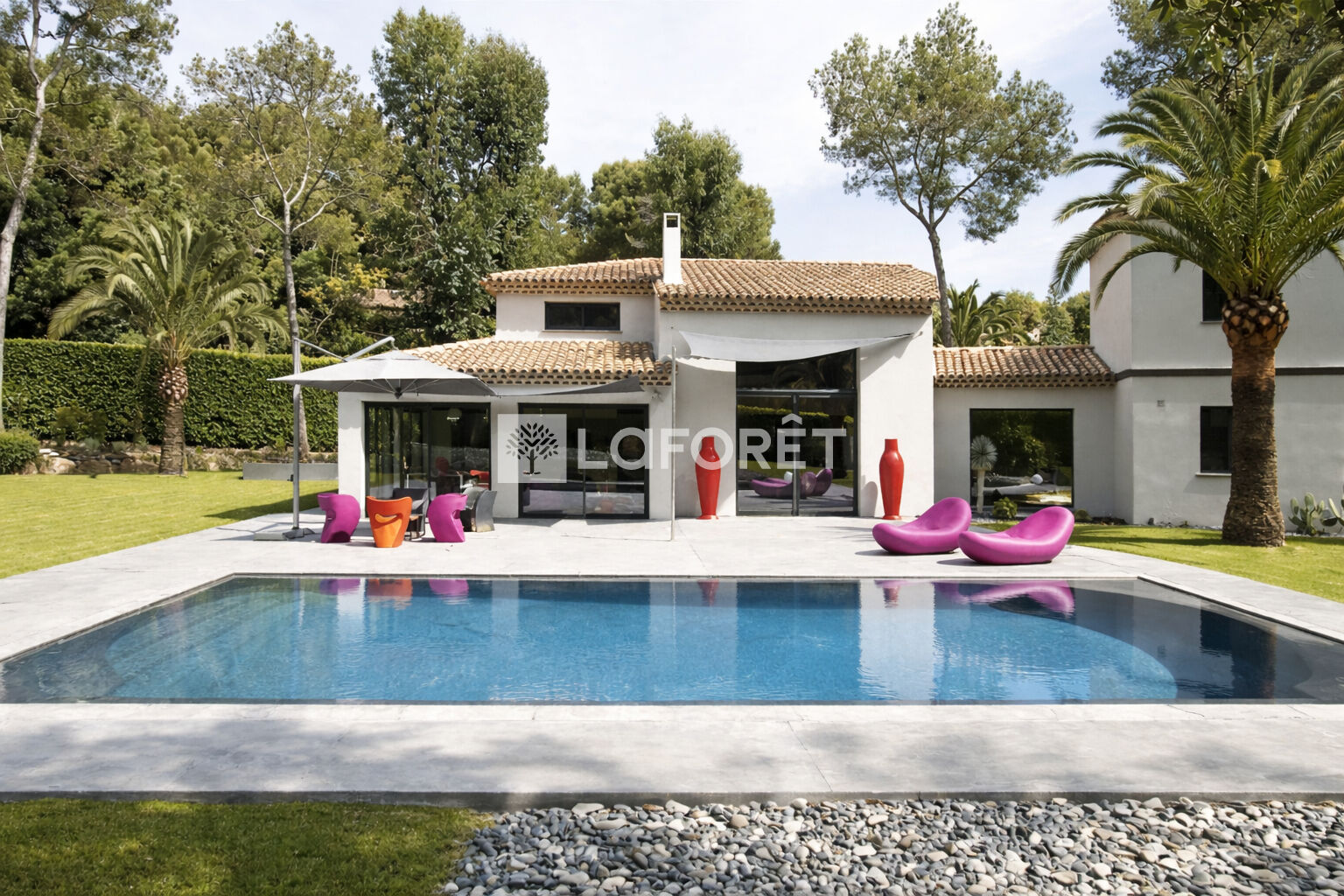 Laforêt Valbonne propose en exclusivité une villa située au sein d'un domaine sécurisé avec gardien, parmi les plus recherchés de Mougins, au calme absolu.