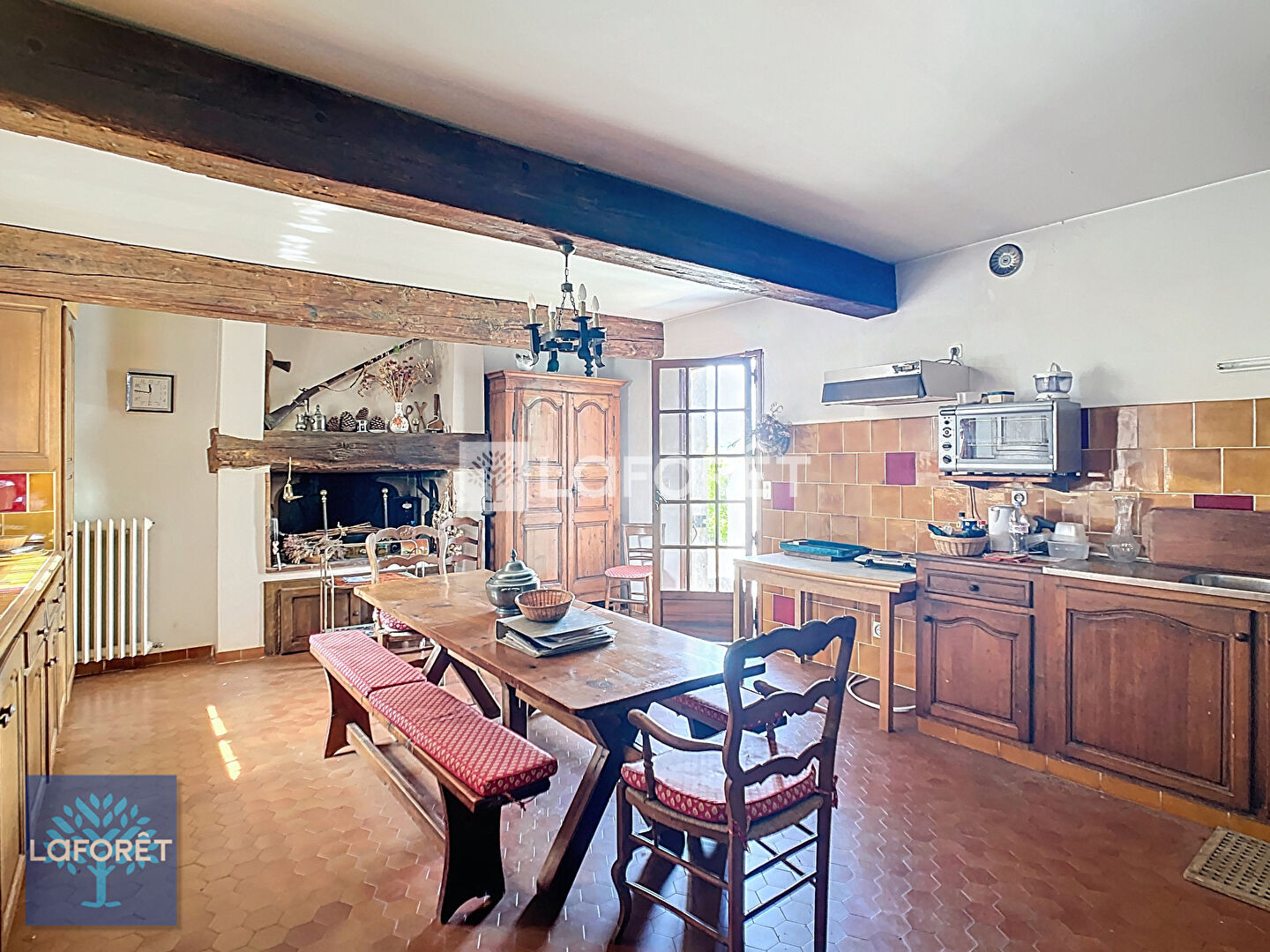 Une grande cuisine indépendante avec cheminée