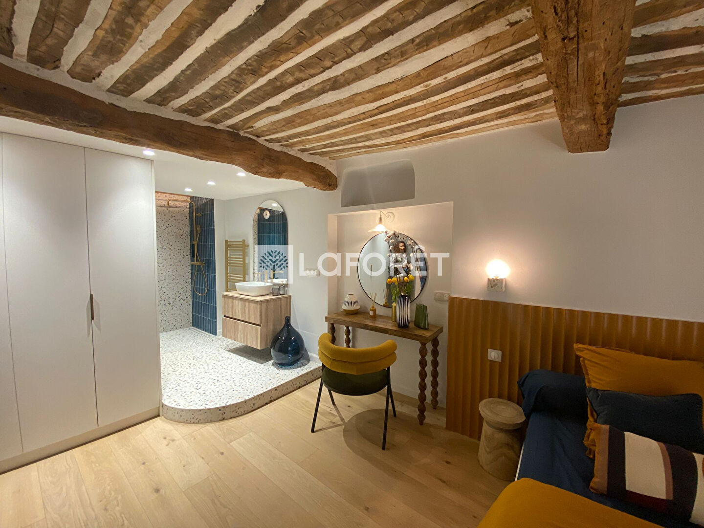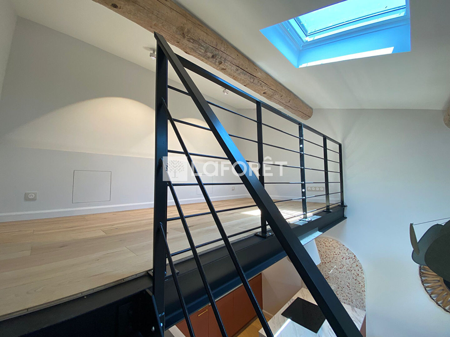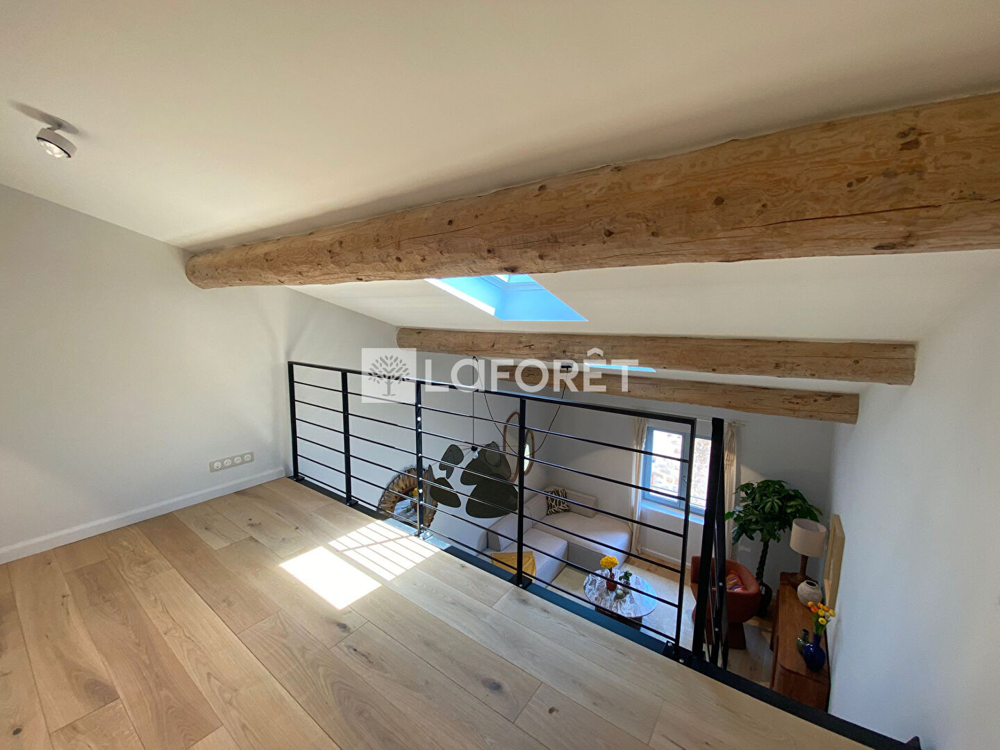 L'espace de vie, situé au dernier étage, baigné de lumière, réunit un séjour chaleureux et une cuisine ouverte entièrement équipée, pensée pour des moments conviviaux. Une mezzanine astucieuse permet de créer un coin lecture, un espace bureau ou une chambre d'appoint.