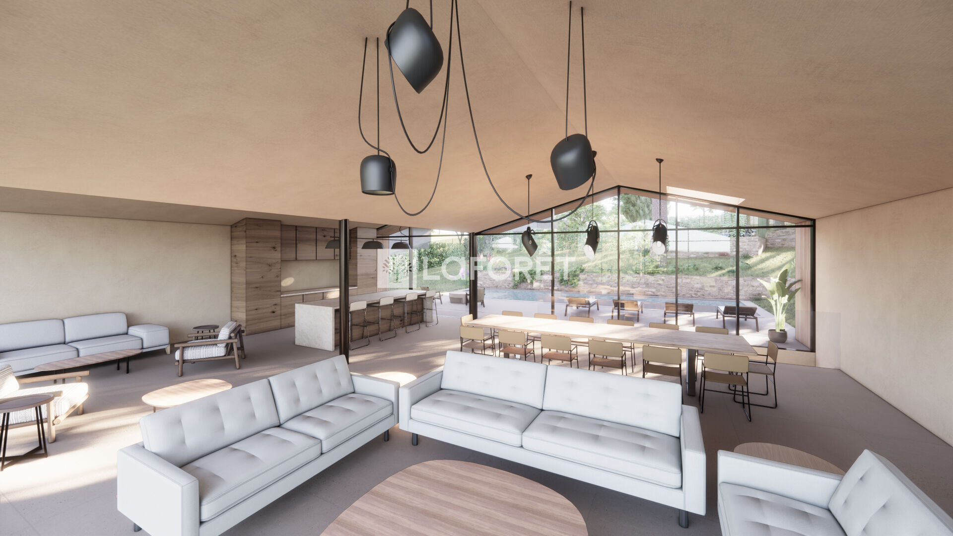 Espace de vie de 110 m², baigné de lumière avec hauteur sous plafond spectaculaire