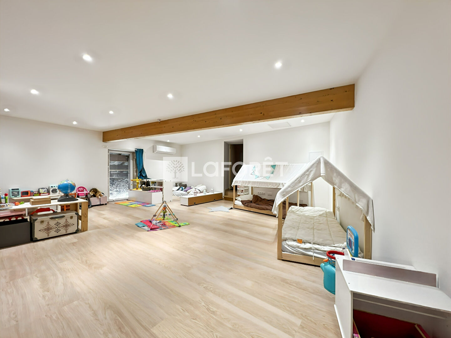 À l'étage, l'espace nuit comprend trois chambres, une salle de bain et une salle de jeux de plus de 40 m².