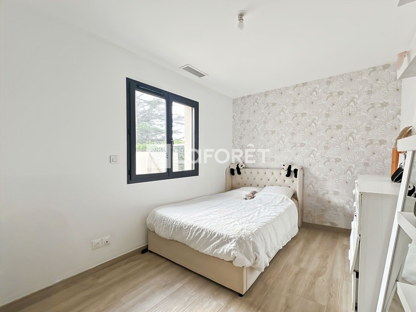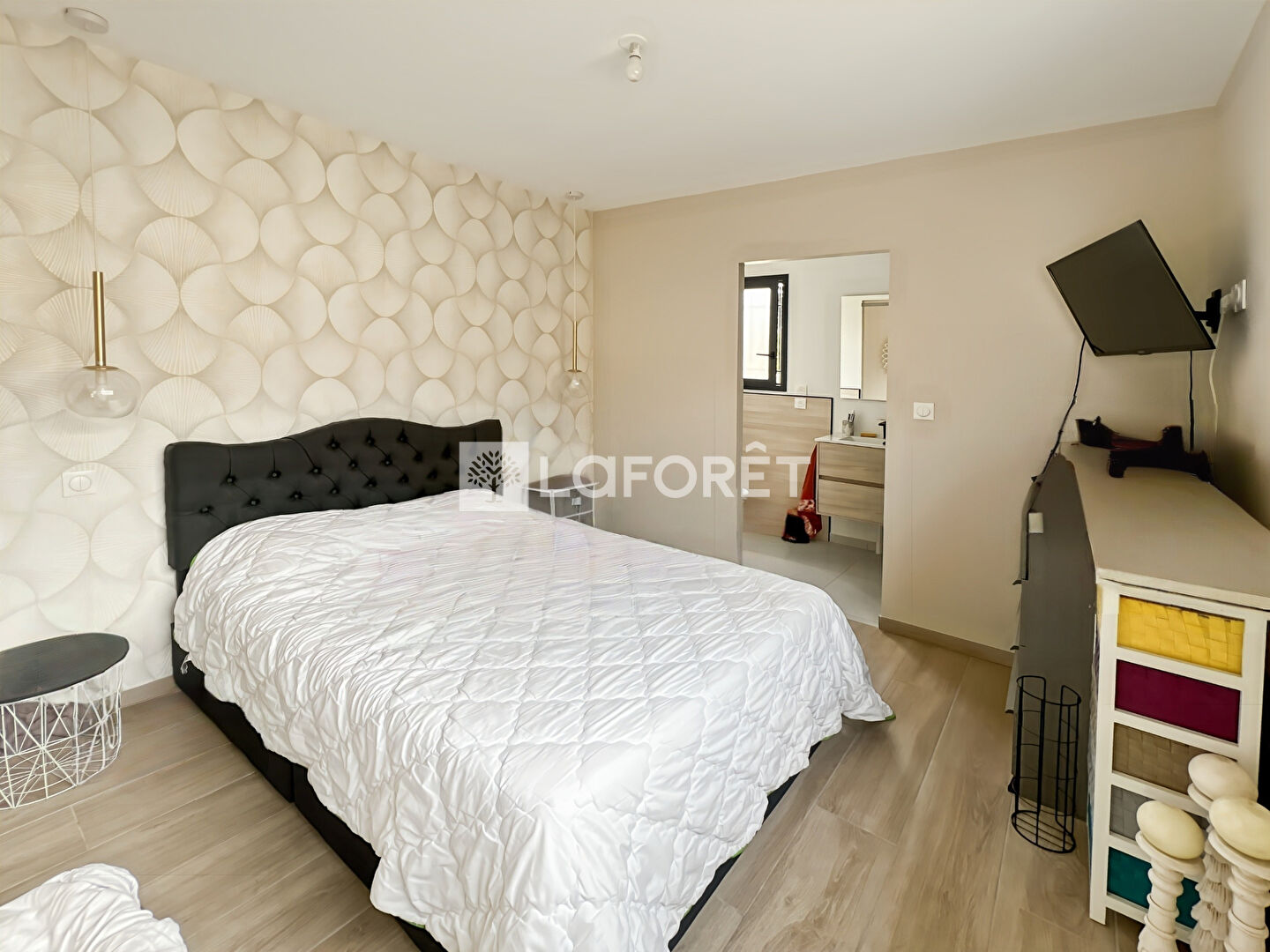Côté nuit, deux espaces bien distincts : deux chambres avec salle de bain d'un côté, et une suite parentale avec dressing et salle d'eau de l'autre.