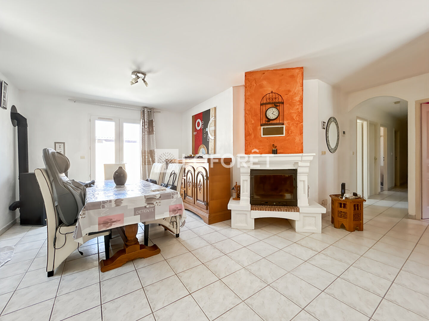 Elle propose une belle pièce de vie lumineuse de 36 m², avec cheminée et climatisation réversible. La cuisine indépendante peut facilement être ouverte sur le séjour. L'espace nuit se compose de quatre chambres, dont deux climatisées, d'une salle de bain et de WC séparés.