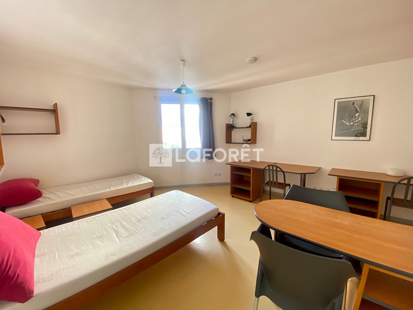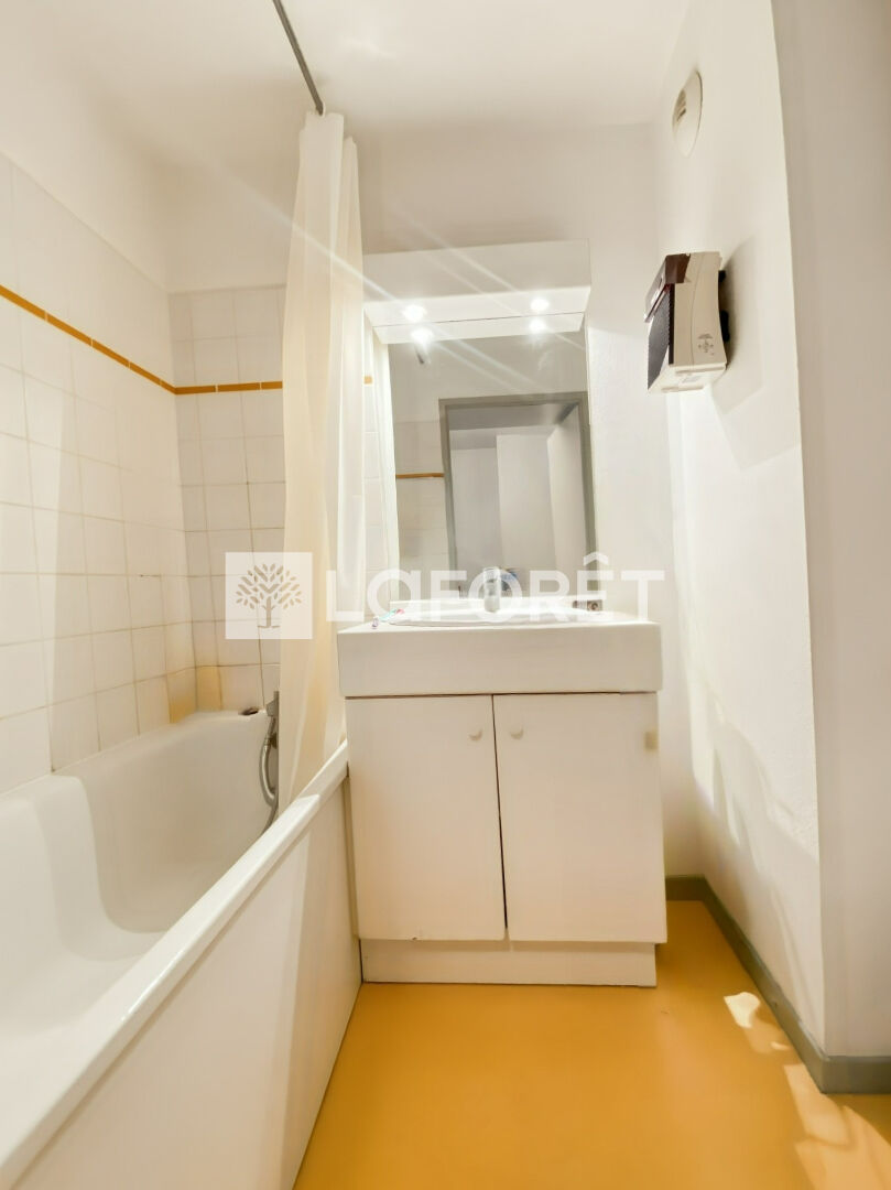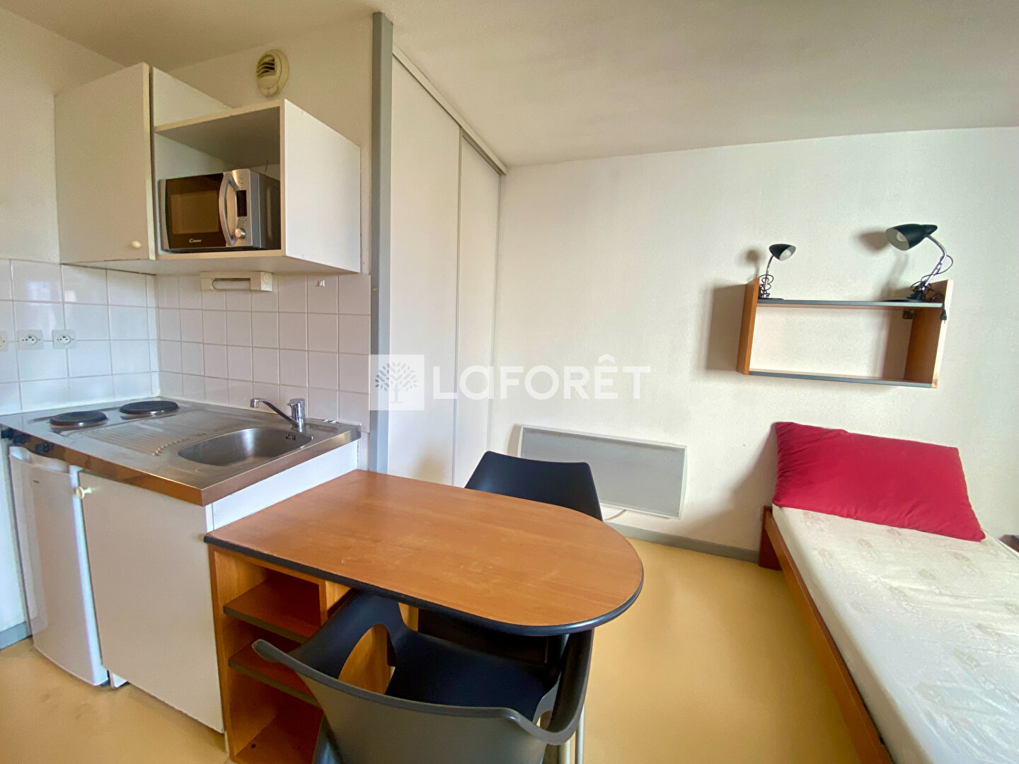 Situé au quatrième étage avec ascenseur, il se compose d'une entrée, d'une pièce de vie avec coin nuit, espace bureau et coin repas, ainsi que d'une kitchenette fonctionnelle équipée de rangements, d'un réfrigérateur, de plaques de cuisson et d'un évier.