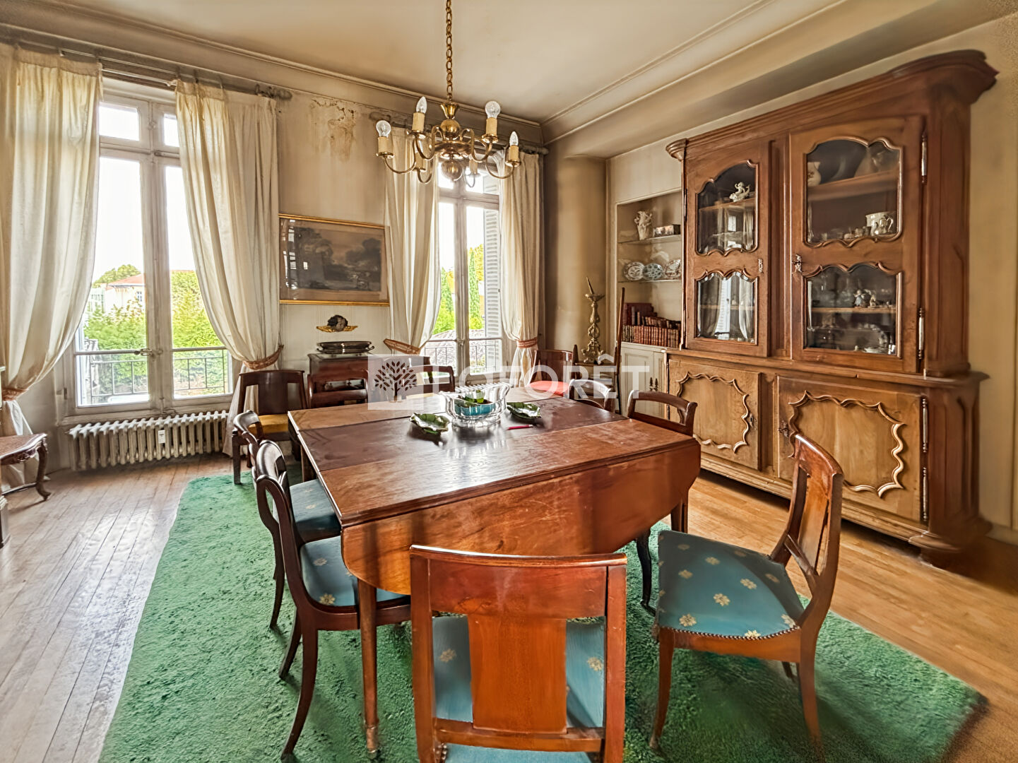 Un lieu chargé d'histoire, au charme authentique préservé, où les parquets à chevrons, moulures et boiseries racontent le passé tout en offrant un cadre idéal pour une rénovation sur-mesure.