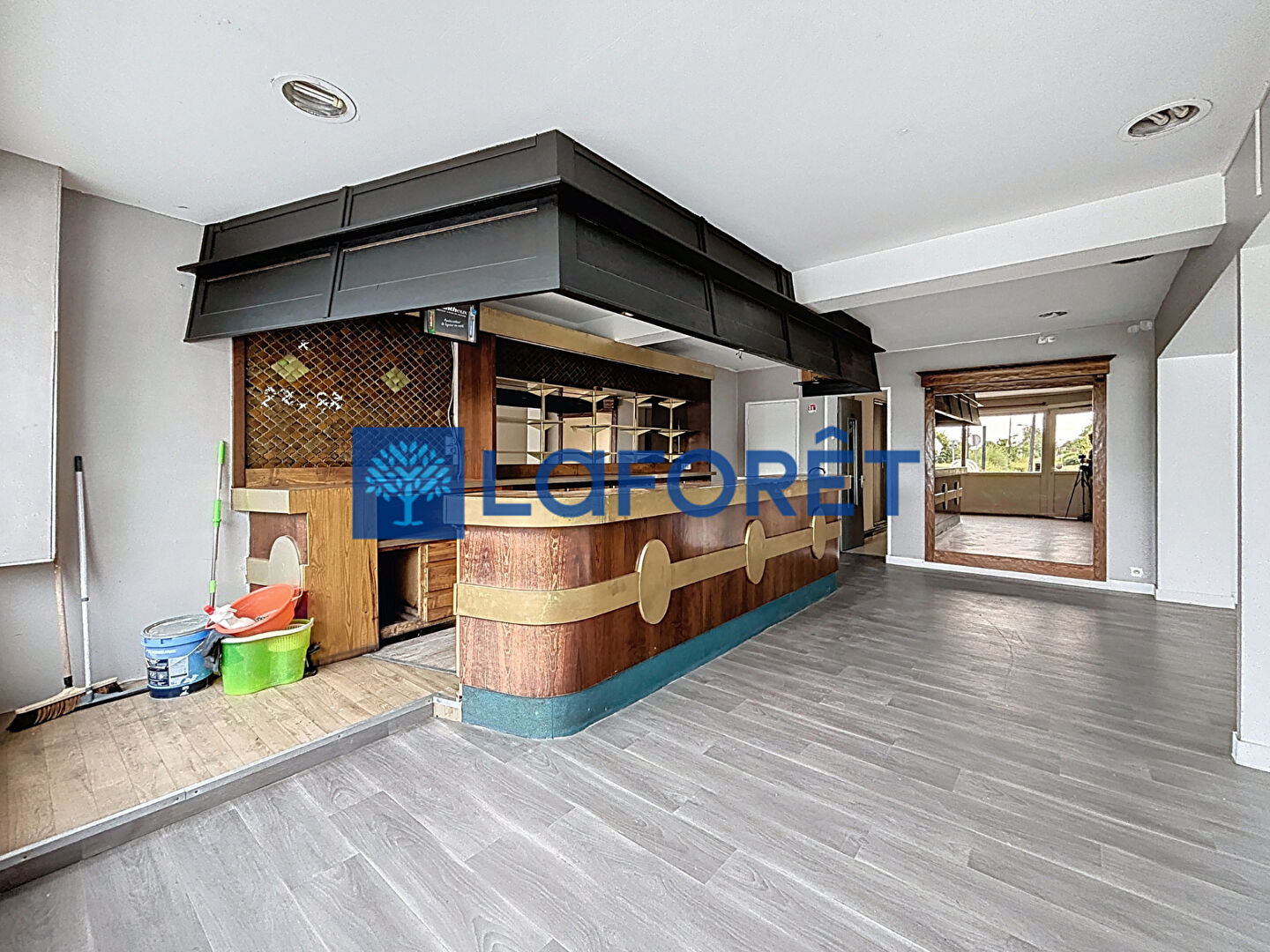 Une partie commerciale de 106,06 m², actuellement aménagée en restaurant/bar, comprenant une grande salle de réception avec bar (87,2 m²), une cuisine professionnelle et des toilettes publiques.