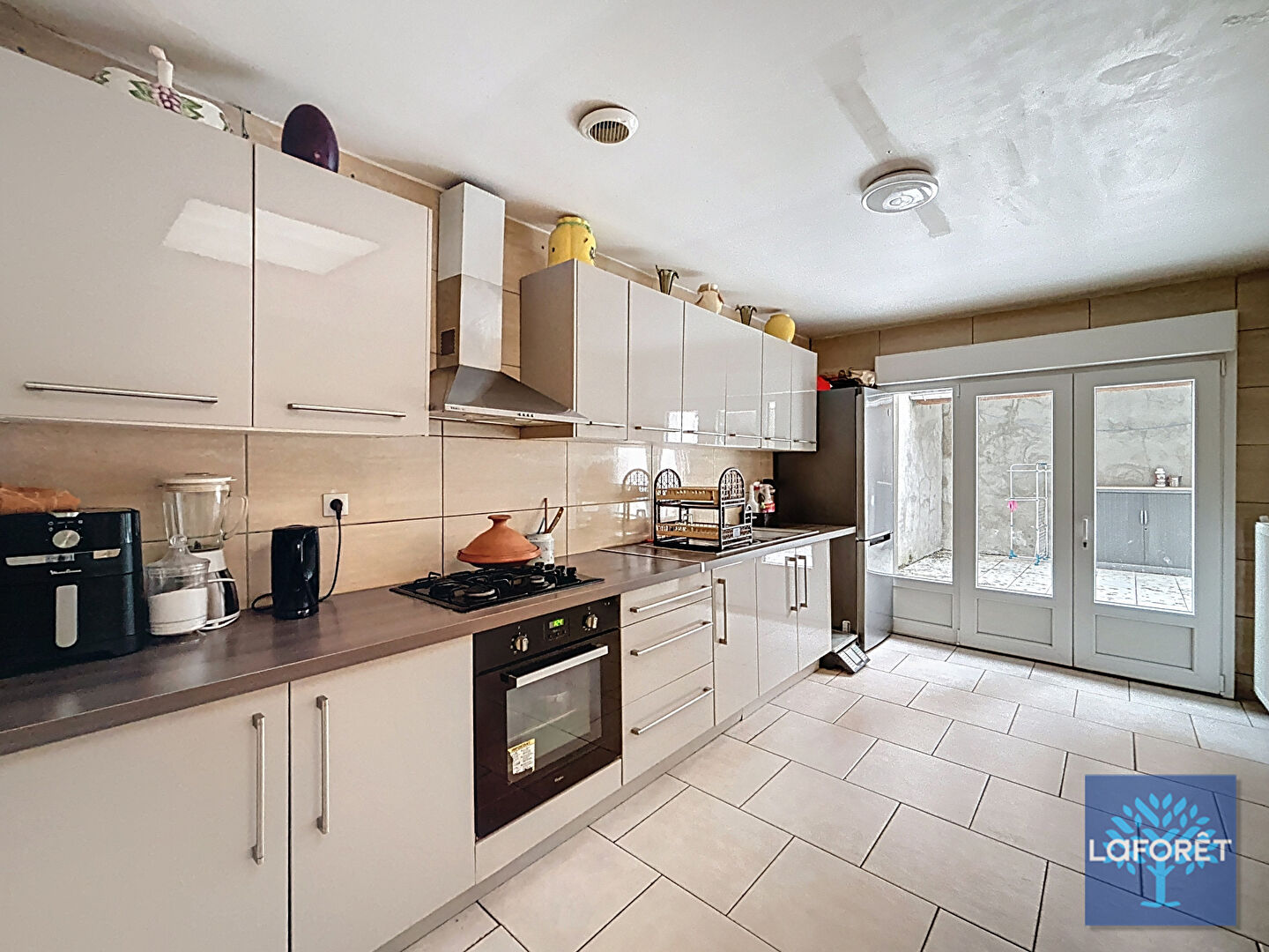 Au rez-de-chaussée, vous découvrirez un salon, un séjour salle à manger convivial, ainsi qu'une cuisine équipée et aménagée. Une salle de bain avec buanderie et des WC séparés complètent ce niveau. Vous profiterez également d'une agréable cour terrassée (22m2), sans vis-à-vis, parfaite pour vos moments de détente.