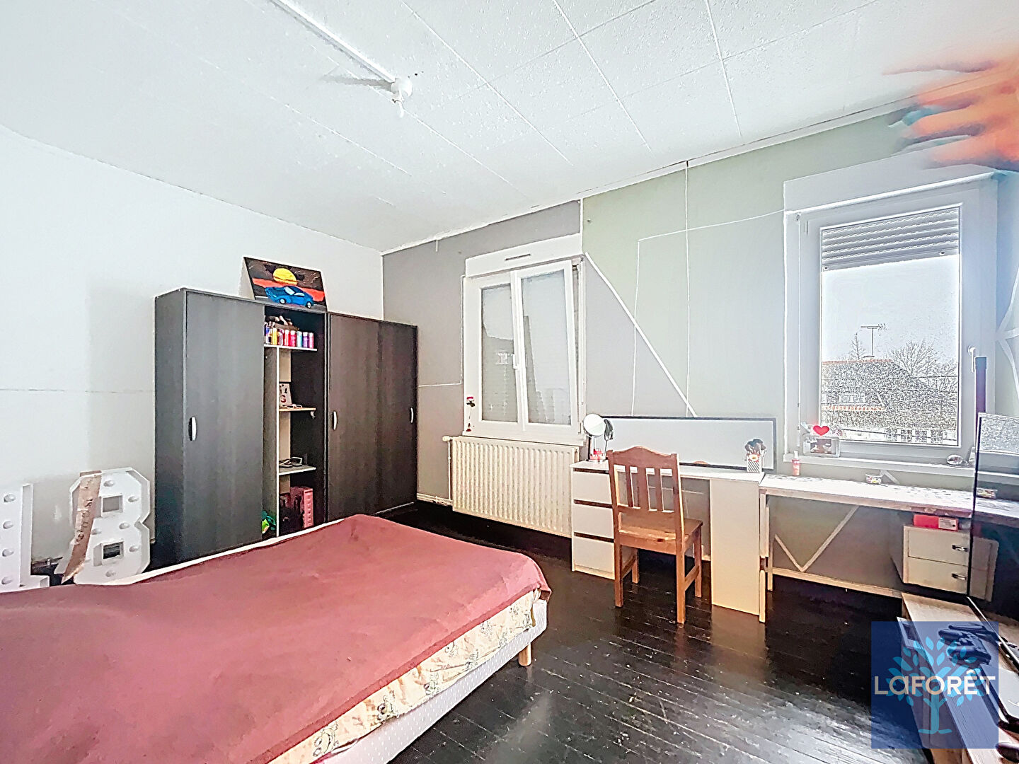 A l'étage : le palier dessert deux grandes chambres (+15m² chacune).