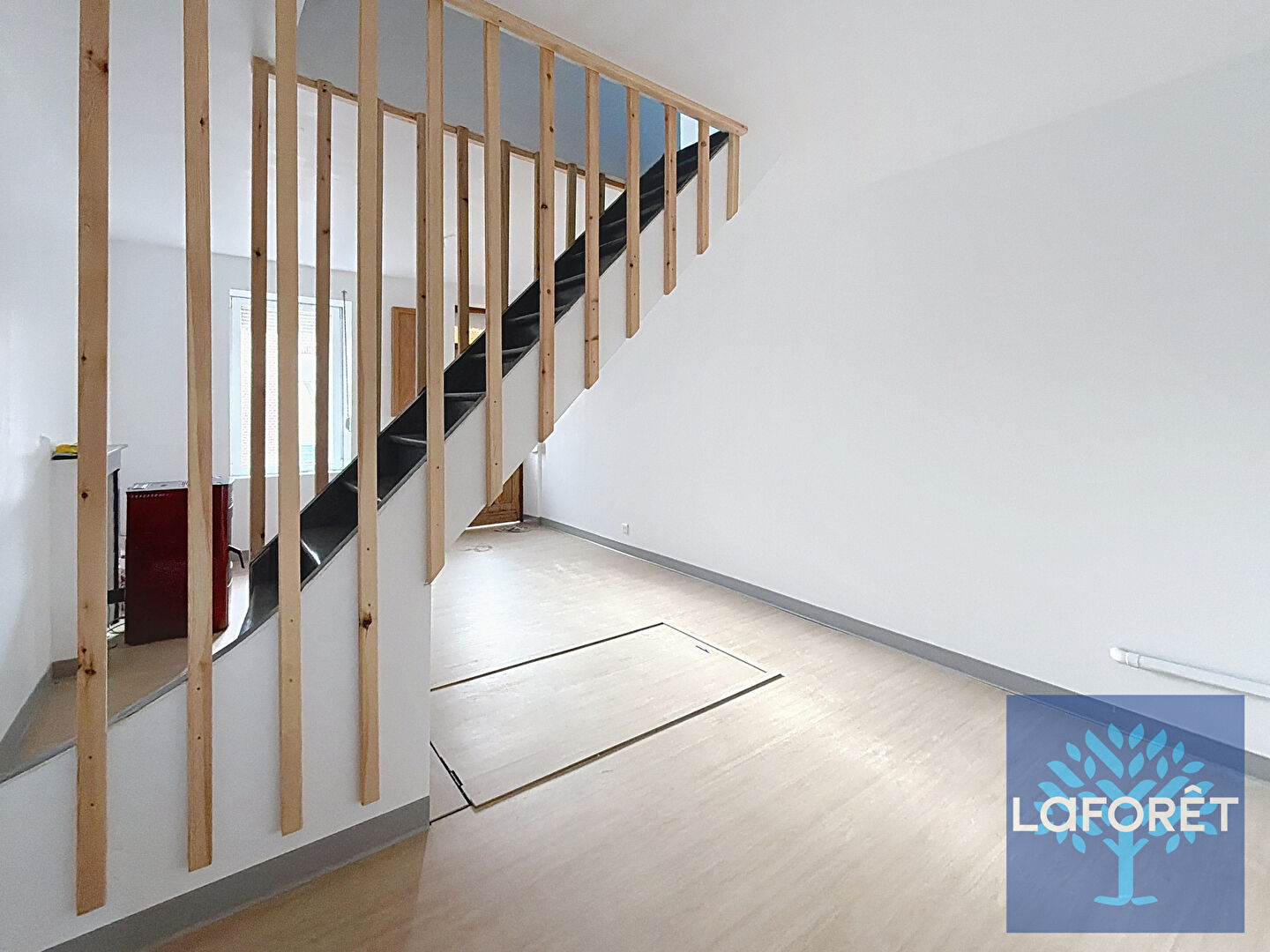 Au rez-de-chaussée, vous trouverez : Un salon de 23m² ouvert sur la cuisine - salle à manger offrant un espace de vie spacieux, cuisine à aménager selon vos envies, une chambre ainsi qu'un WC indépendant,