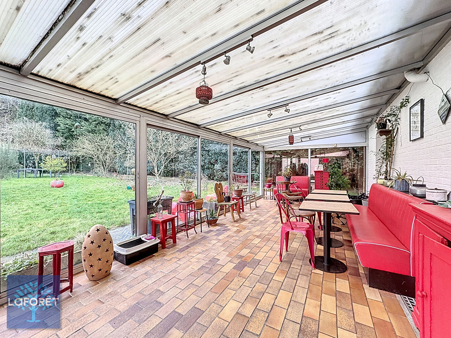 - une véranda de 30 m² avec vue sur le jardin arboré