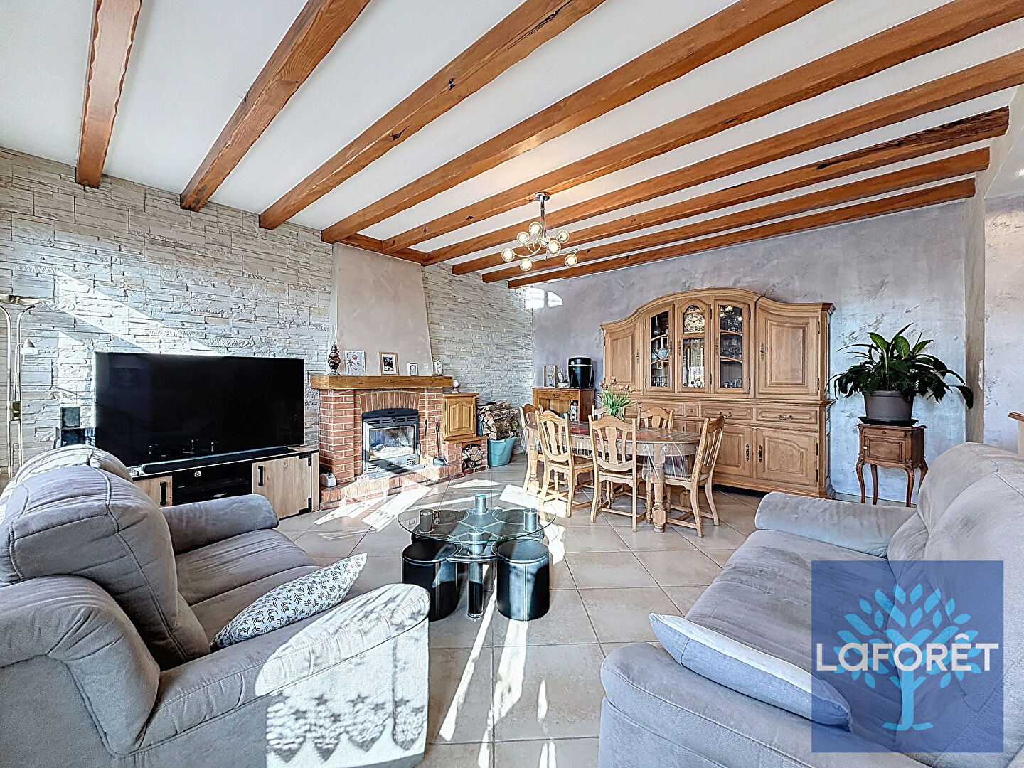 Dès l'entrée, vous découvrirez un hall accueillant qui dessert un vaste ensemble séjour / salle à manger d'environ 40 m², offrant un bel espace de vie lumineux et convivial pour partager de bons moments en famille ou entre amis. La maison dispose également d'une cuisine indépendante, fonctionnelle et agréable, permettant de préparer de bons petits plats en toute sérénité.