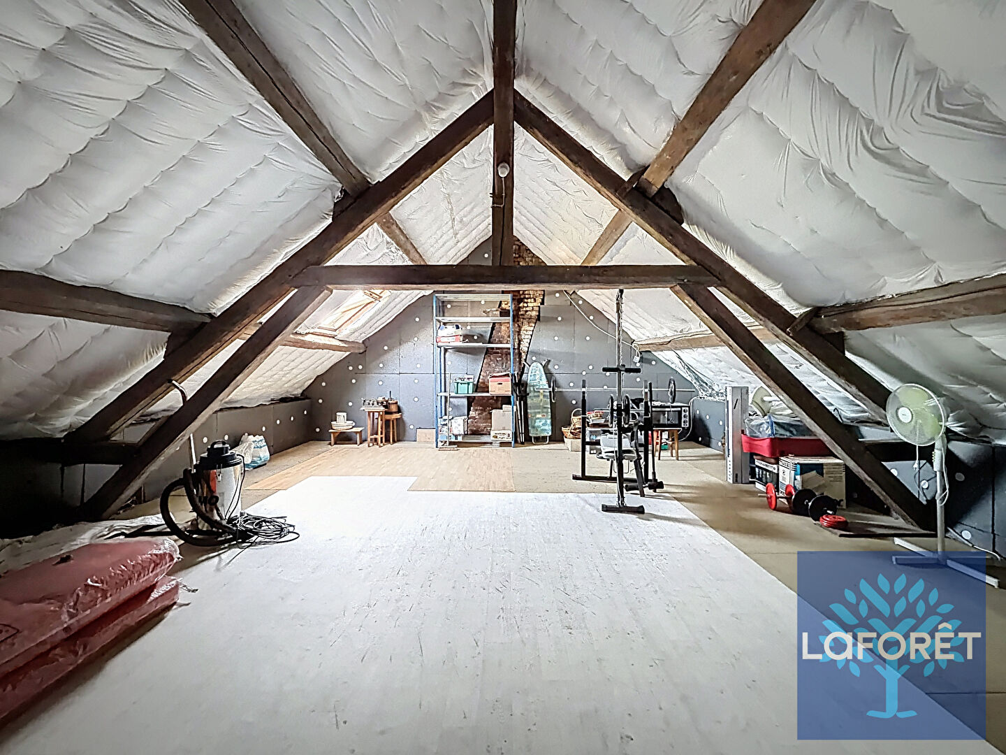 À l'étage, l'espace nuit se compose de quatre chambres, dont deux de près de 17 m², offrant de beaux volumes pour accueillir toute la famille. Un grenier d'environ 40 m² vient également compléter l'étage et pourra être utilisé comme espace de stockage ou être aménagé selon vos projets.