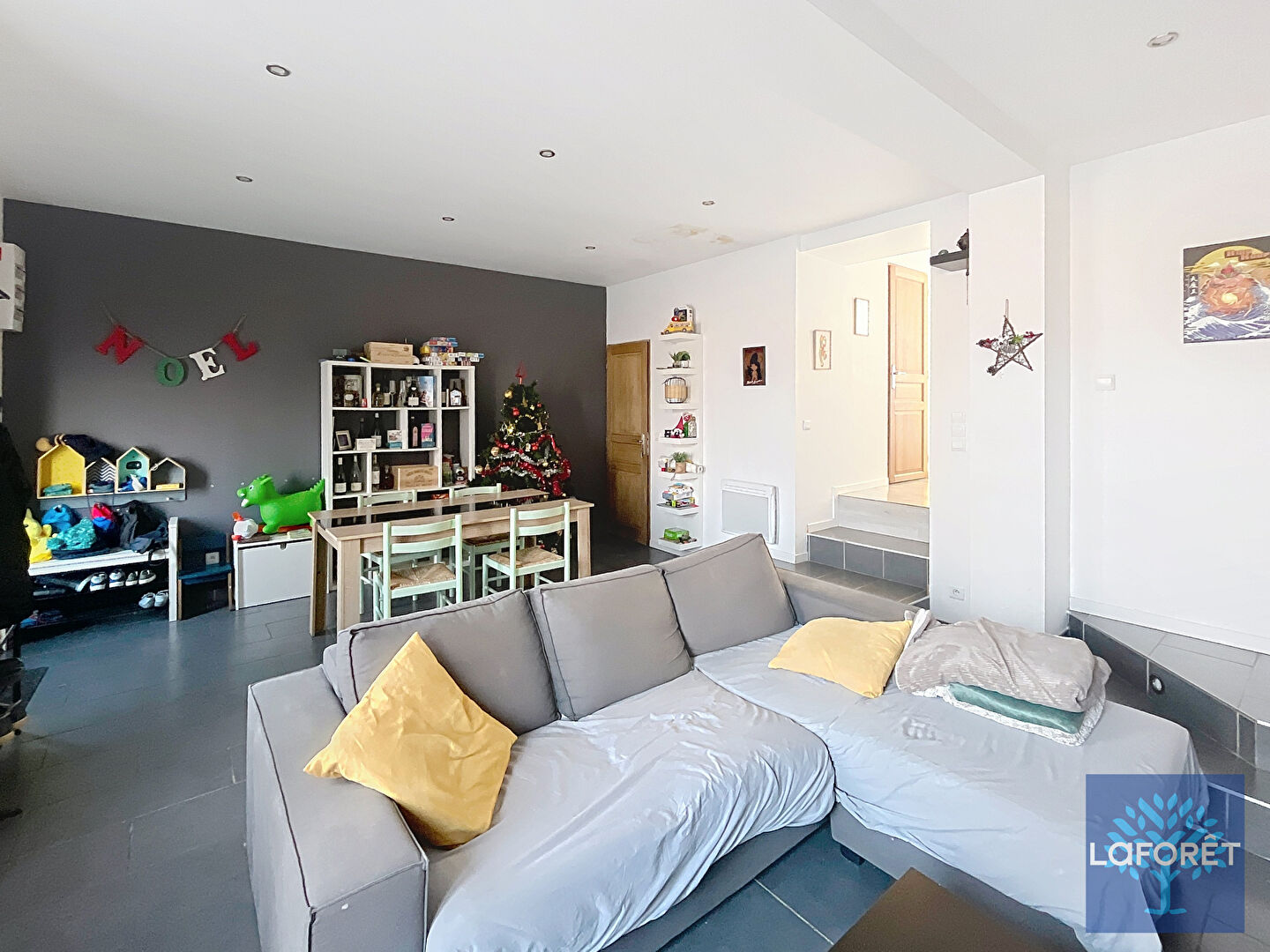 Dès l'entrée, vous serez séduit par un salon / séjour lumineux de 30 m², offrant un bel espace de vie convivial. Le rez-de-chaussée dispose également d'une grande chambre de 17 m², idéale pour une vie de plain-pied, un bureau ou une suite parentale, ainsi que d'une salle de bains complète avec baignoire et douche, et des WC séparés.