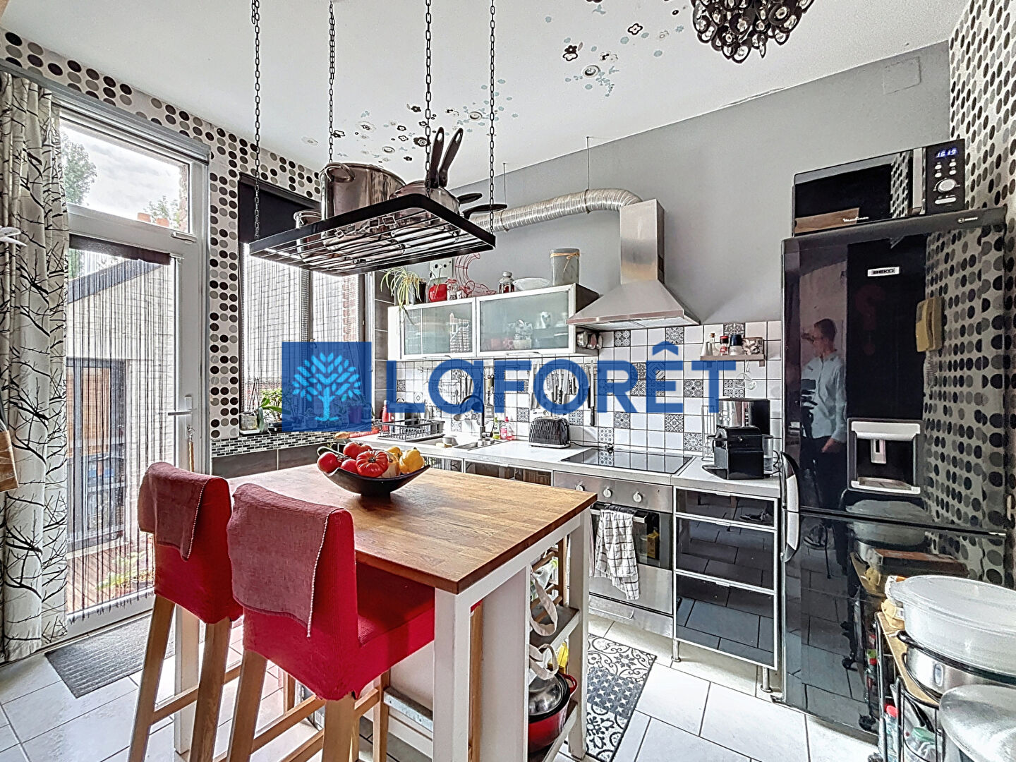 Vous trouverez au rez-de-chaussée une cuisine américaine équipée, ouverte sur un grand salon séjour, l'ensemble idéalement exposé Ouest.