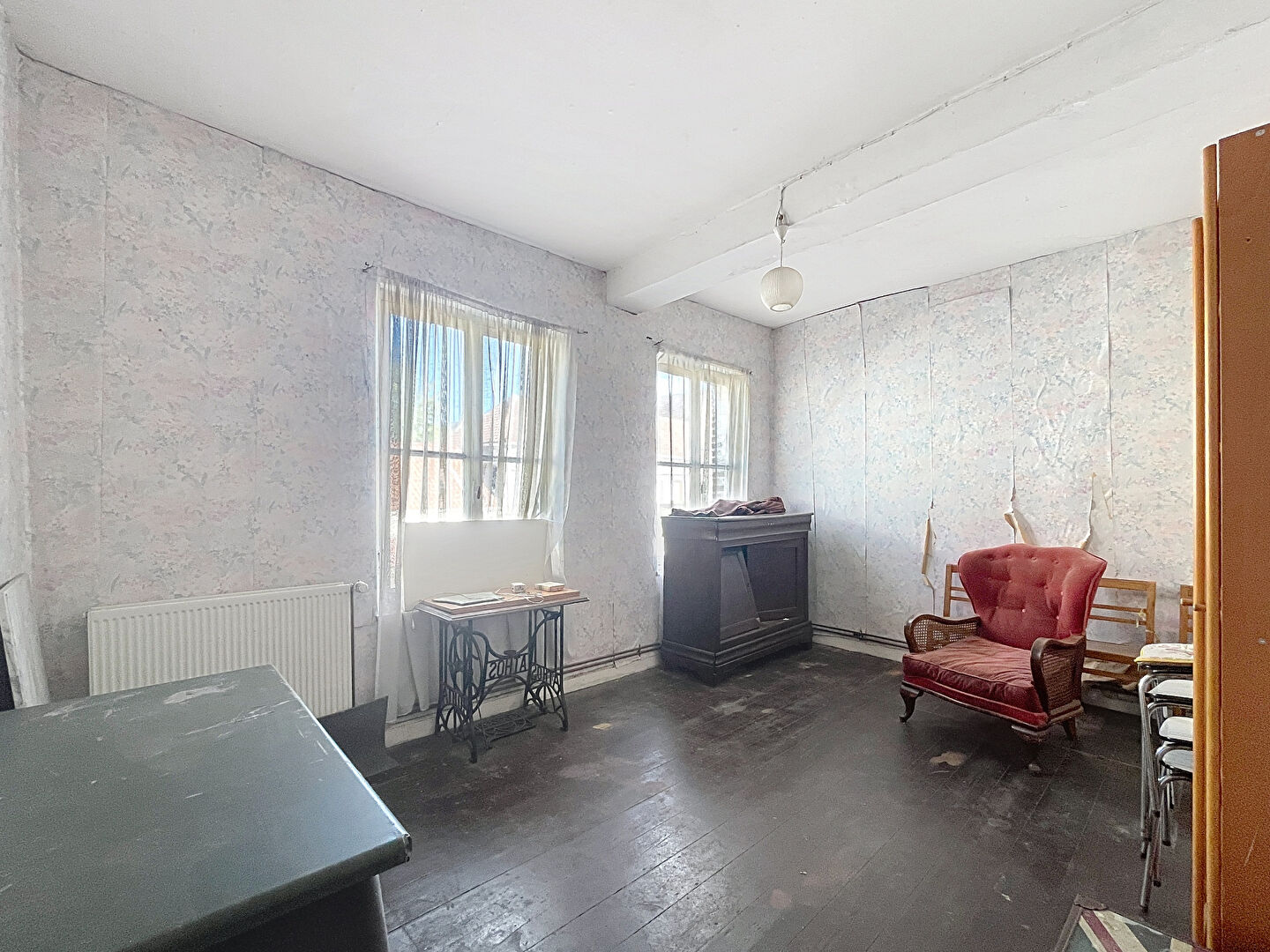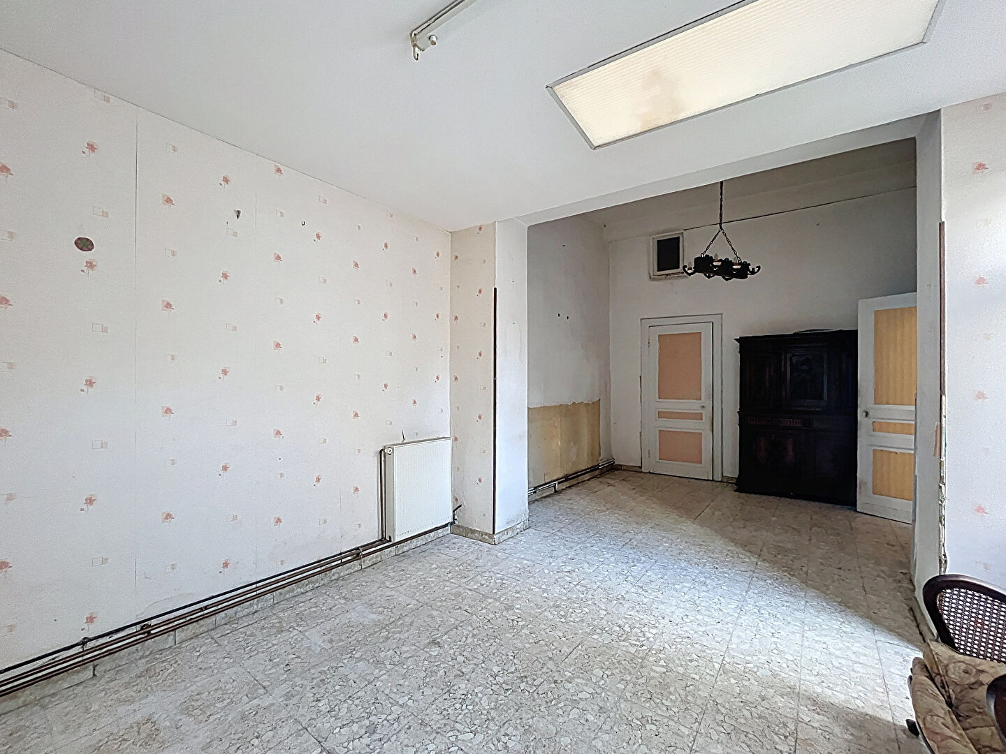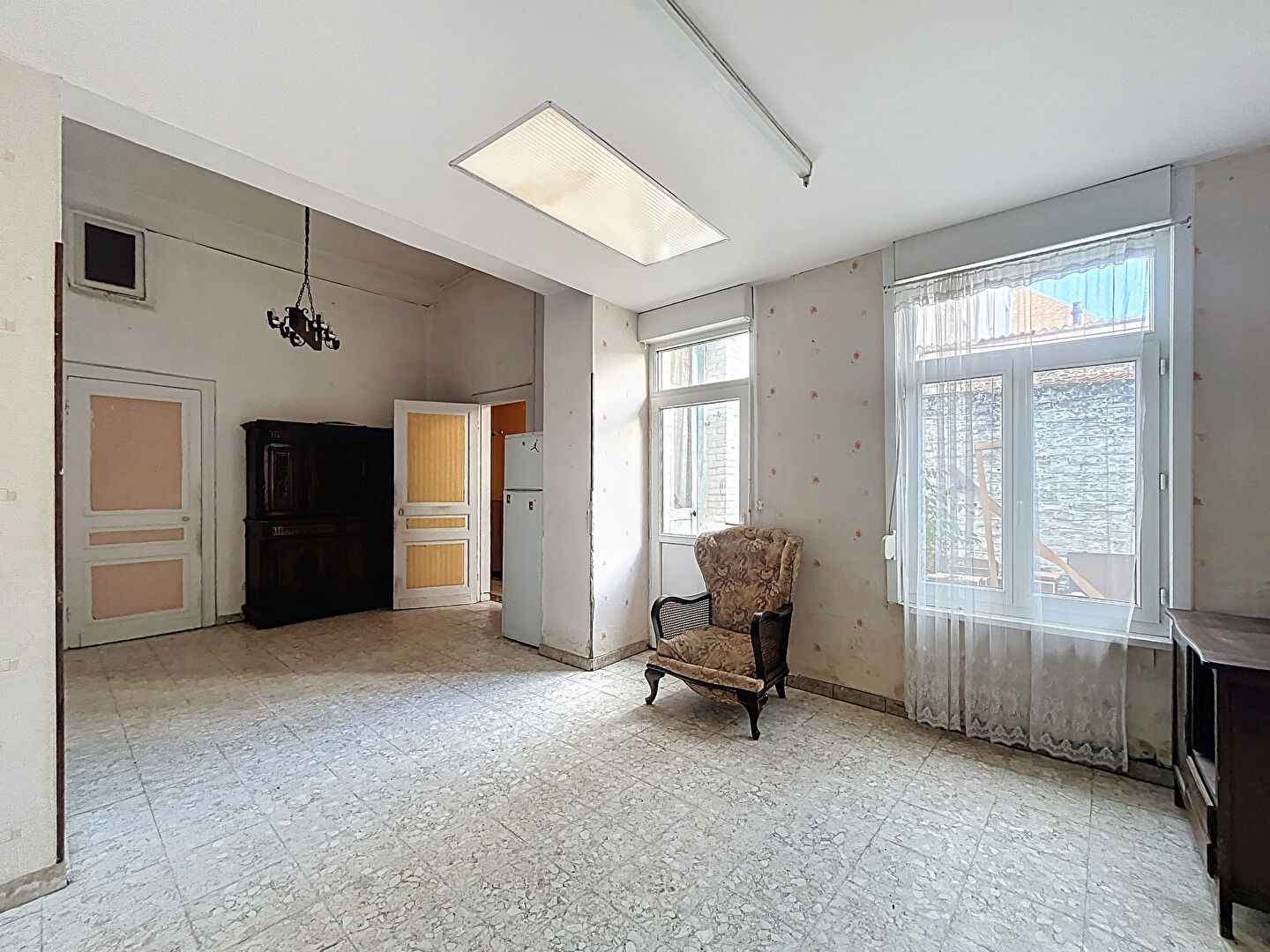 Ce bien, à rénover entièrement, développe de beaux volumes et offre de multiples possibilités d'aménagement. Il se compose actuellement de :