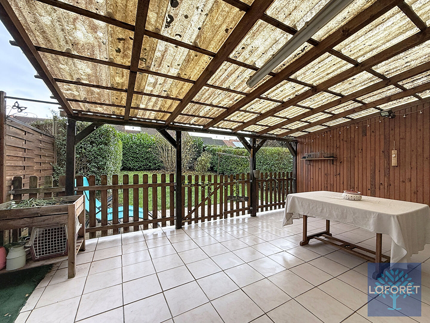 A l'extérieur, vous attend un jardin clos avec terrasse et pergola de 20m².