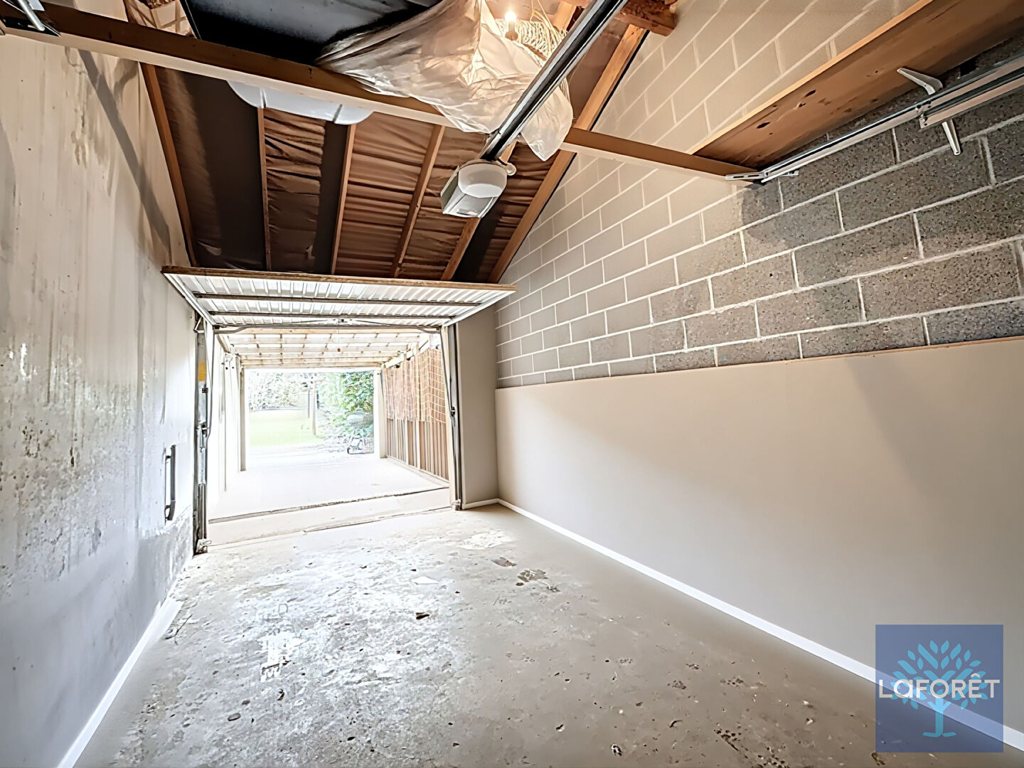 La maison dispose également d'un grand garage traversant ainsi que d'un carport et d'un stationnement privé en façade.