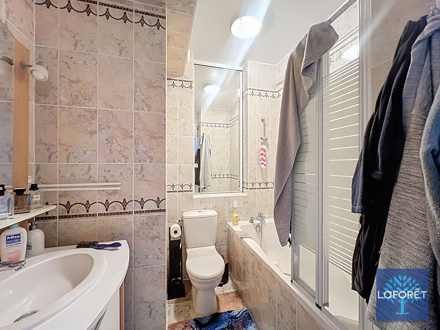 Une entrée, salle de bain, coin cuisine et un espace de vie totale de 40m²