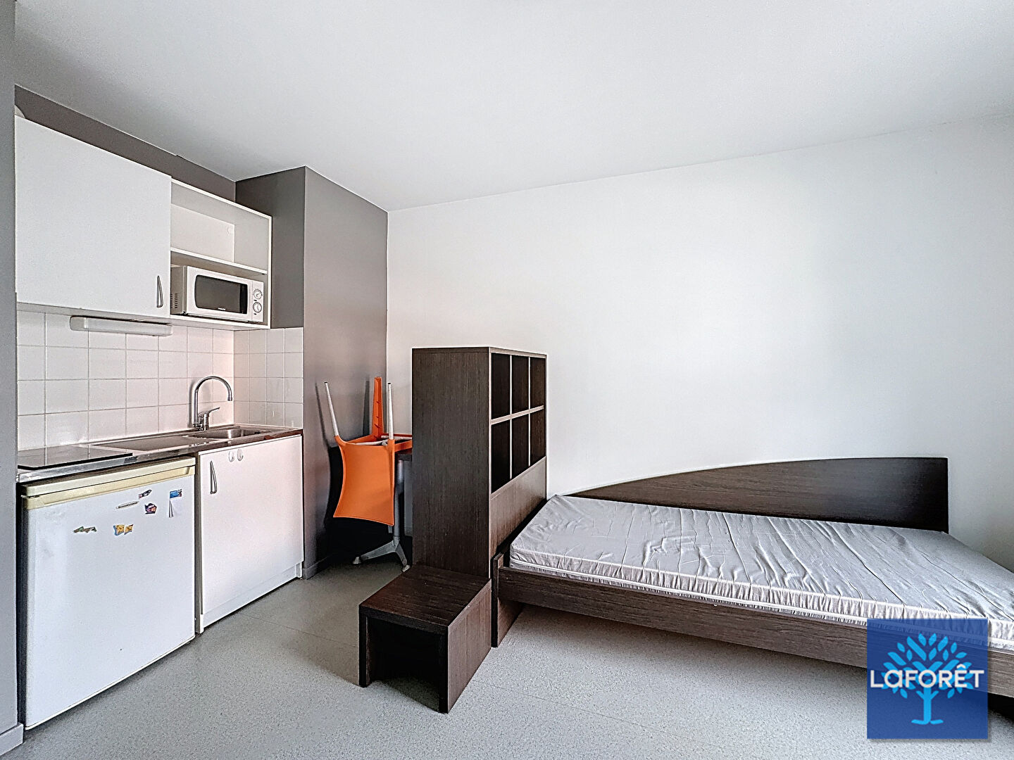 Une entrée, salle de bain, coin cuisine et un espace de vie totale de 20m2
