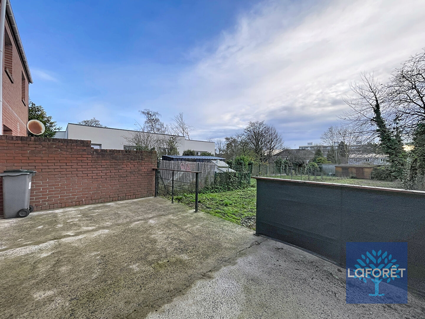 Un jardin avec abri de rangement, ainsi que d'une place de parking en cour intérieure, située face à la maison.