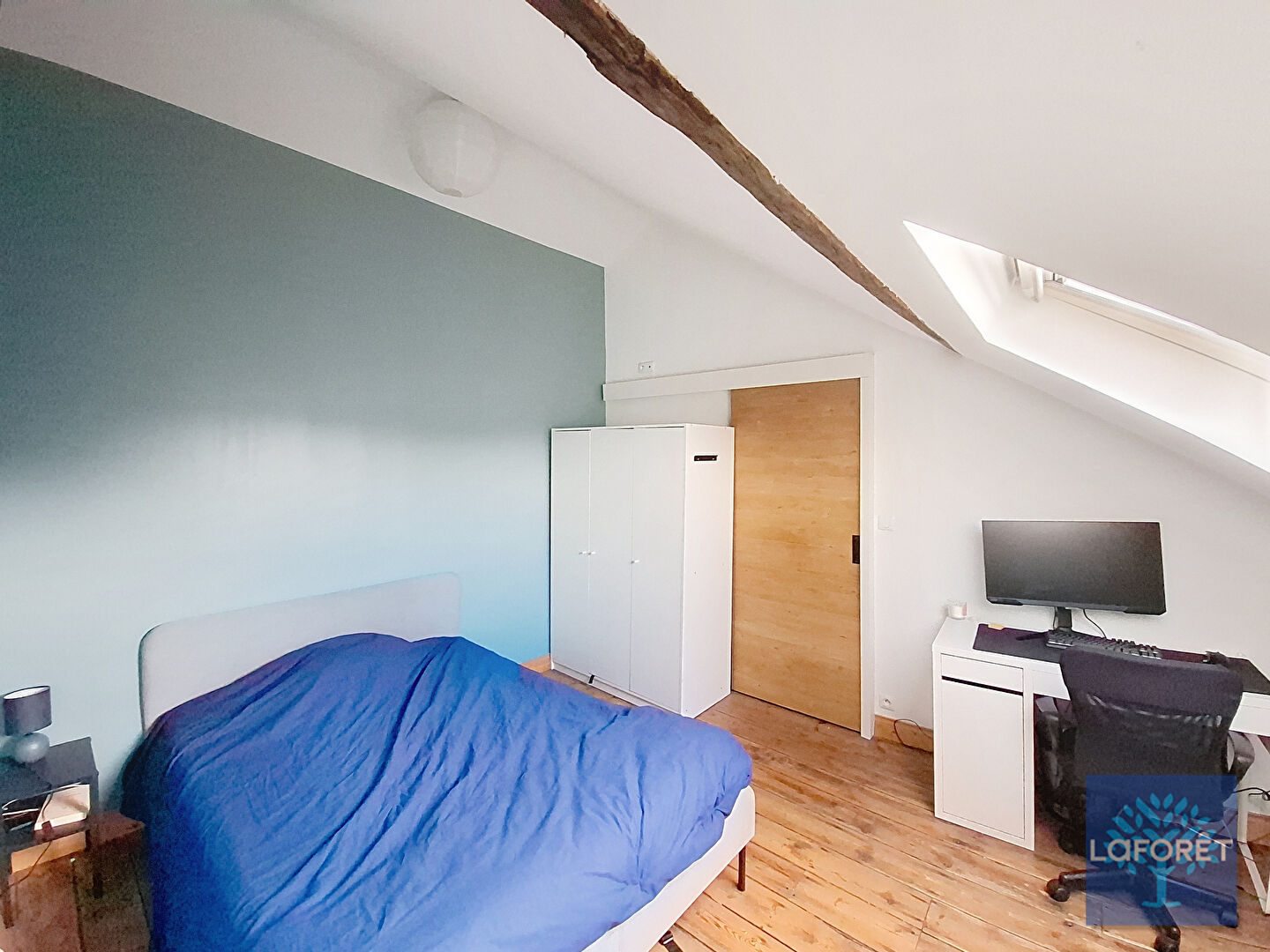 Cette chambre confortable et entièrement équipée offre un cadre de vie agréable dans une colocation calme et conviviale.