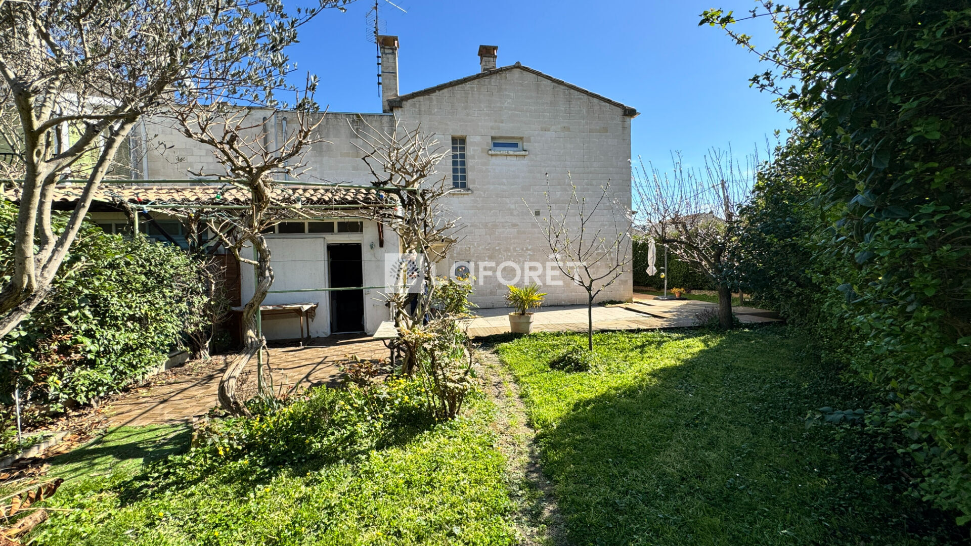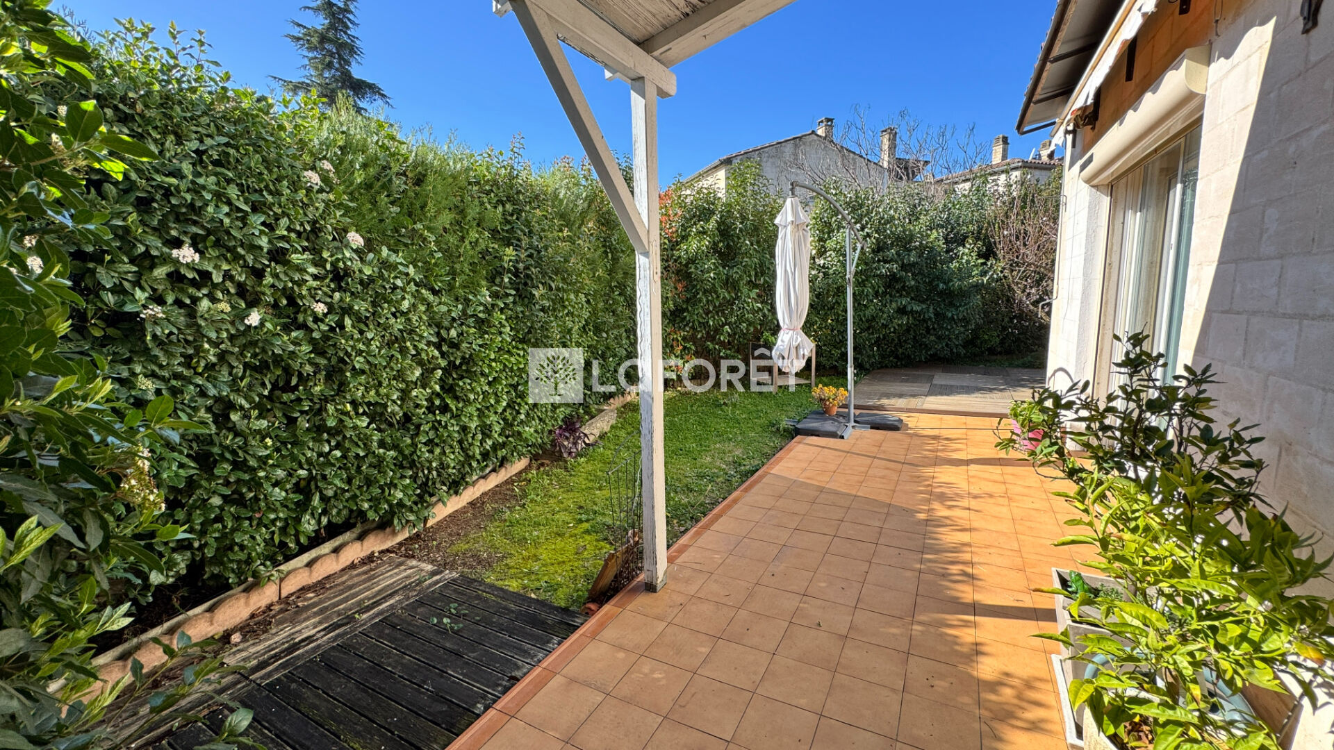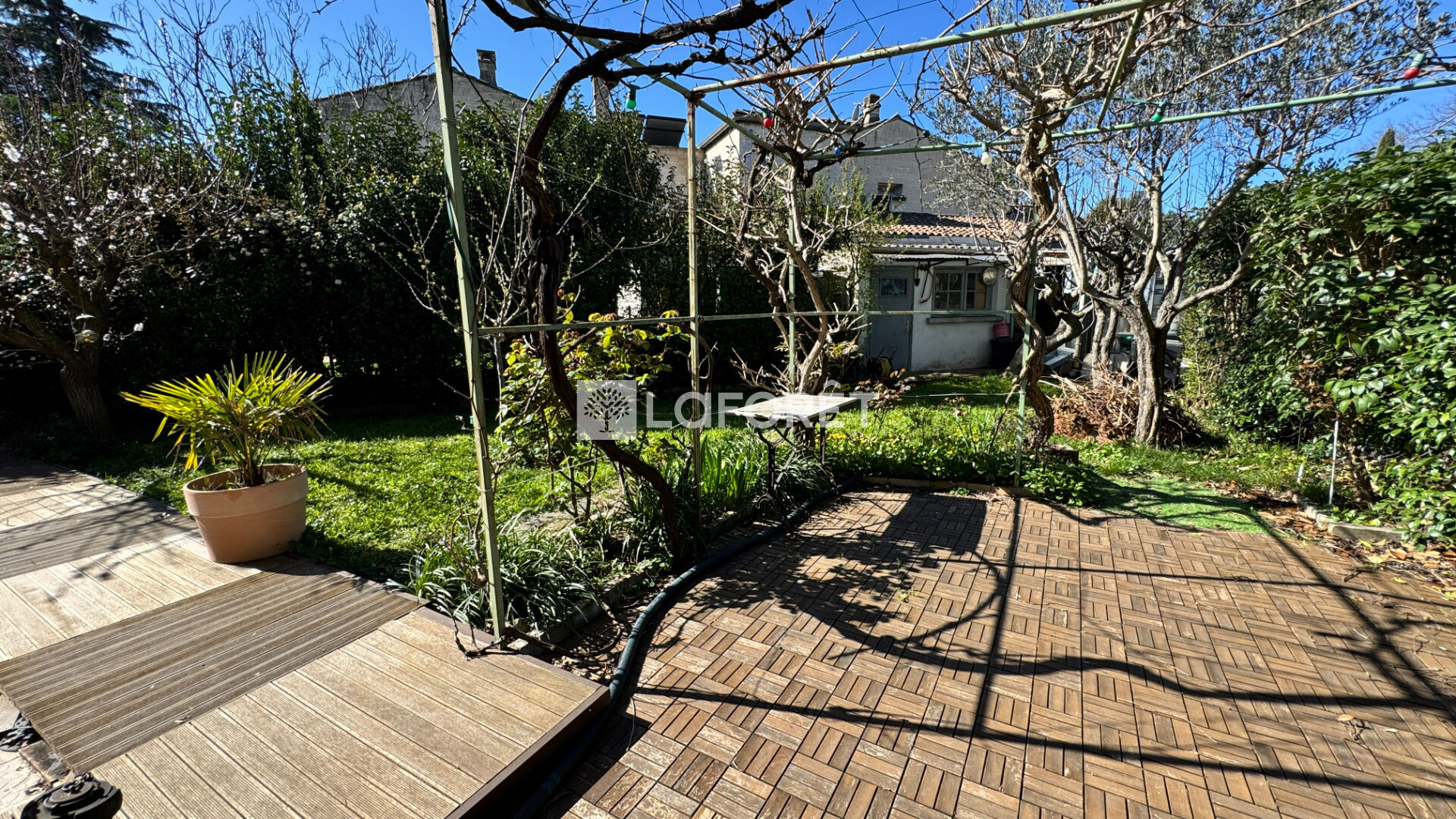Vous pourrez profiter d'un jardin végétalisé d'environ 200 m2 disposant de 2 petits ateliers de bricolage. A l'avant : un abri voiture.