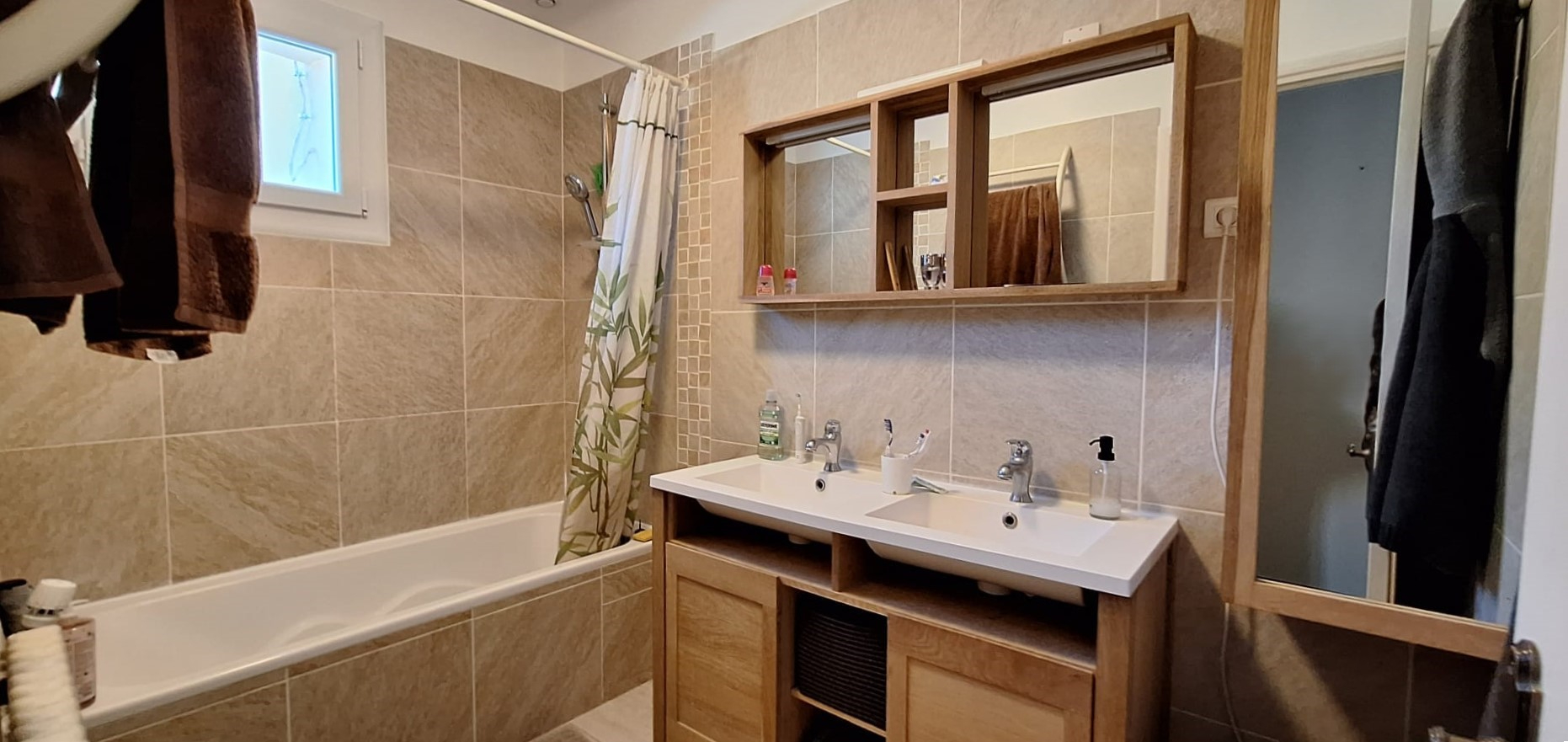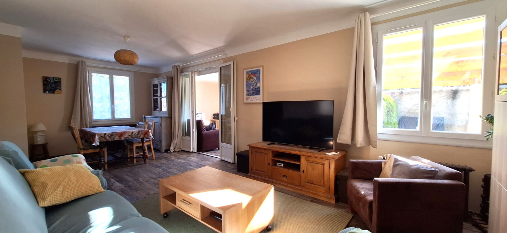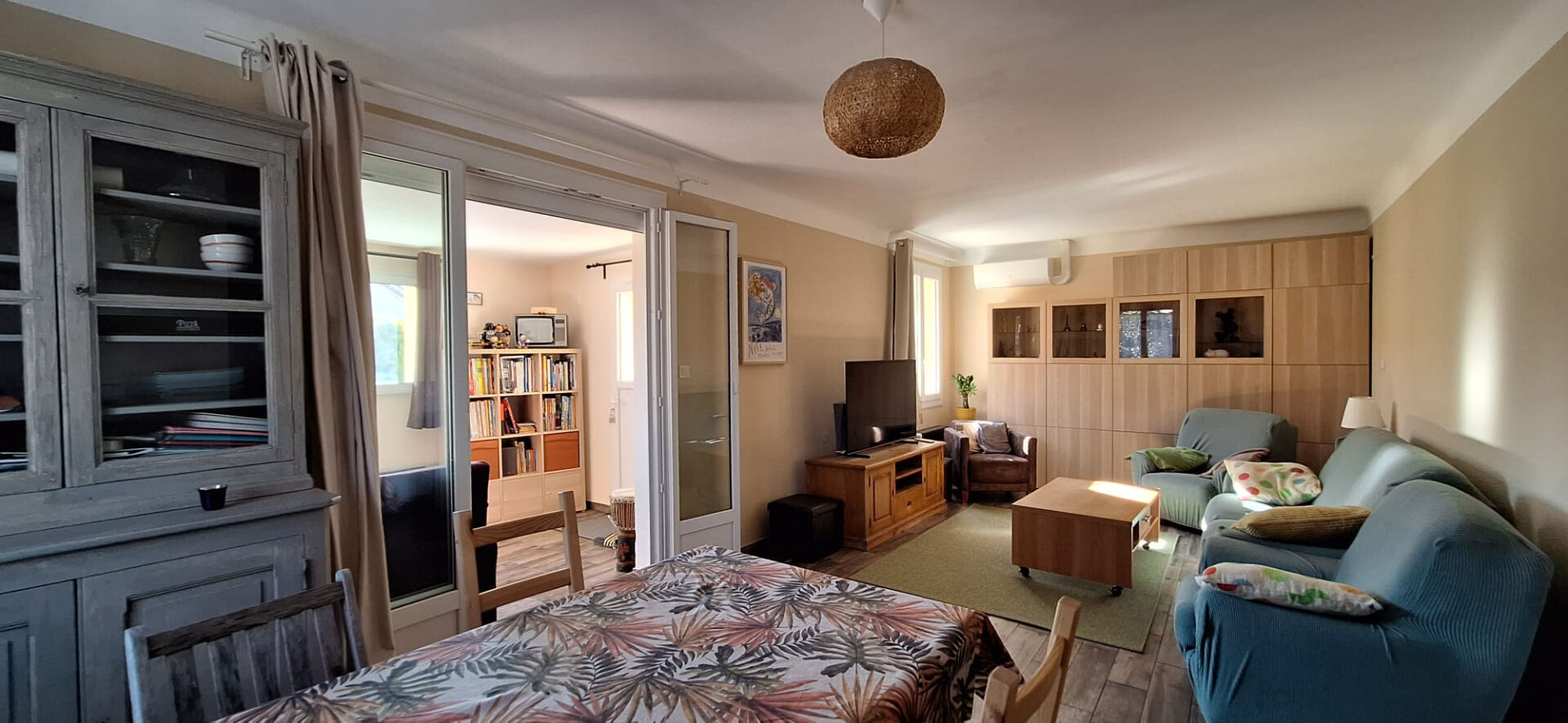 La maison se compose d'un séjour lumineux, d'une cuisine indépendante entièrement équipée, de 3 chambres, d'un bureau, d'une salle de bains et de toilettes séparés.
