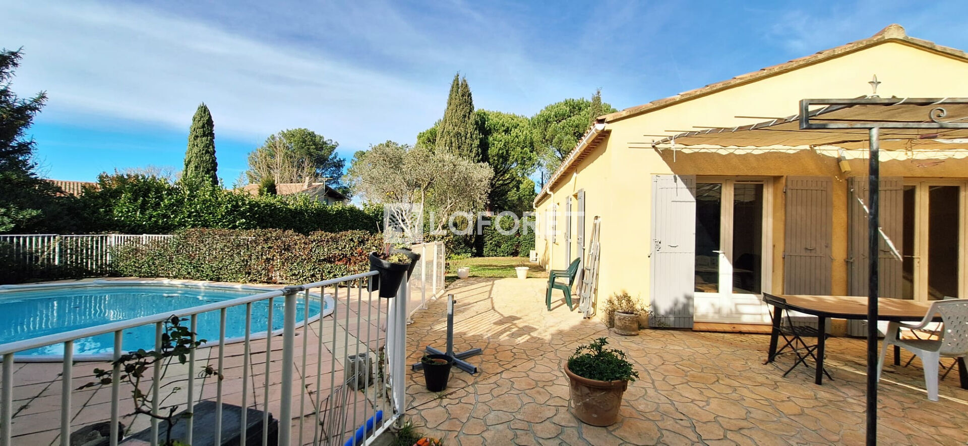 JOLIE MAISON DE PLAIN-PIED / TERRAIN 1005 M² / 3 CHAMBRES DE 12 A 13 M² / PIECE DE VIE 40 M² / DEPENDANCE 90 M² / GARAGE / CAVE / PISCINE / FORAGE / CLIMATISATION / PORTAIL ELECTRIQUE.