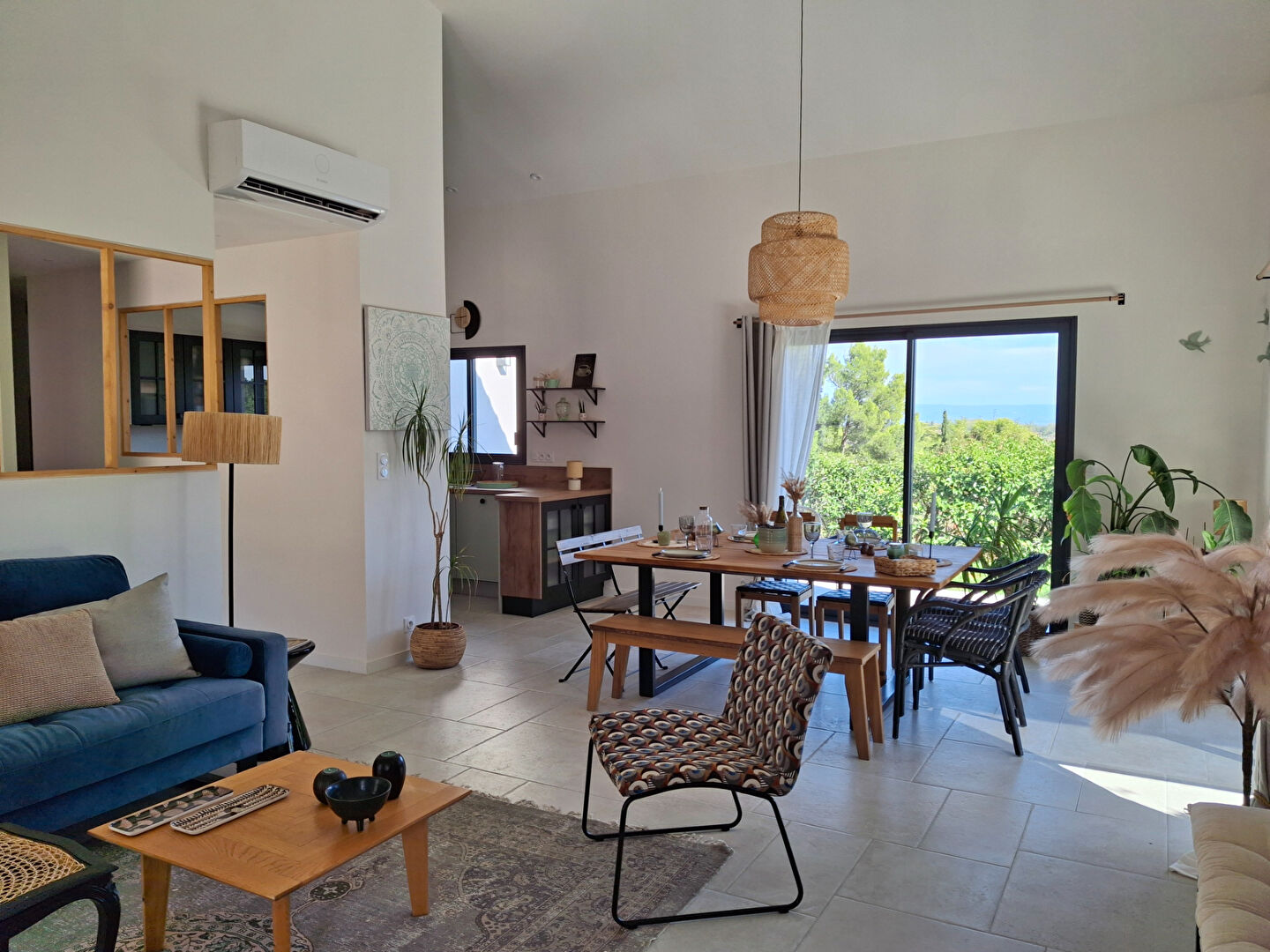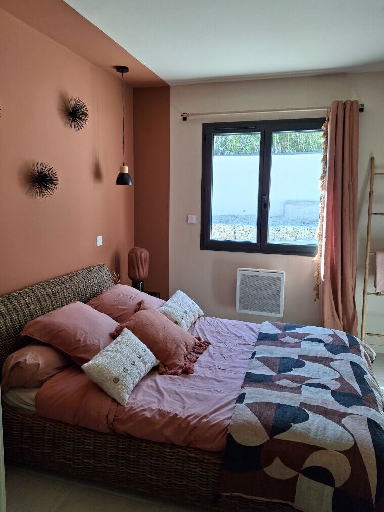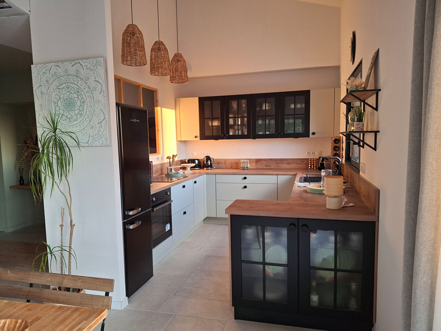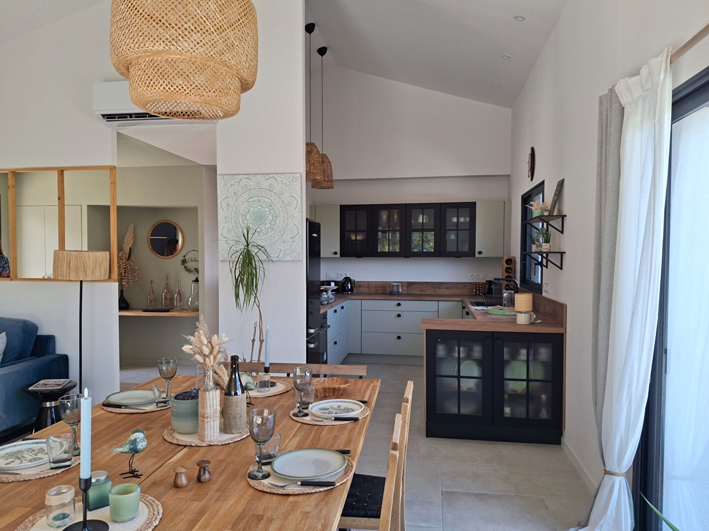 Cette belle maison contemporaine située dans un quartier agréable se compose , d'un hall d'entrée avec placard, un espace salon séjour lumineux une cuisine américaine aménagée équipée ,le coin nuit est composé d'une buanderie , un wc avec lave main ,une chambre avec salle d'eau wc et dressing , deus chambres et une salle de bain, garage. (Elle peut être vendu avec ou sans meubles ) Piscinable.