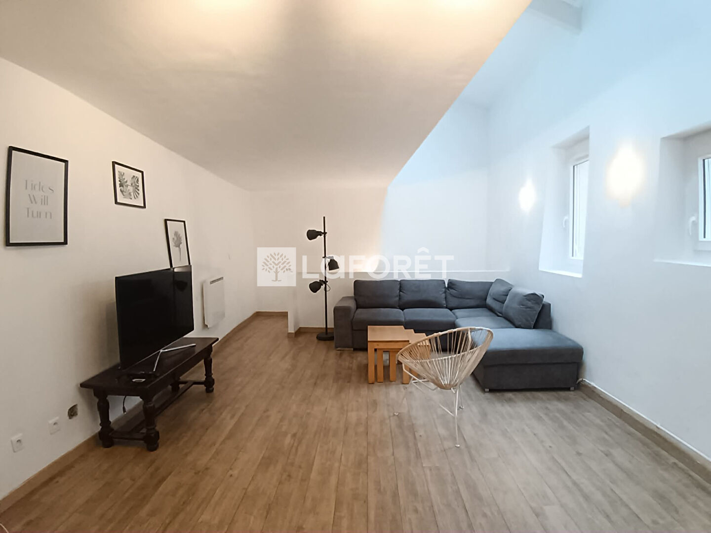 Entièrement loué meublé avec un mobilier contemporain, cet appartement se compose :