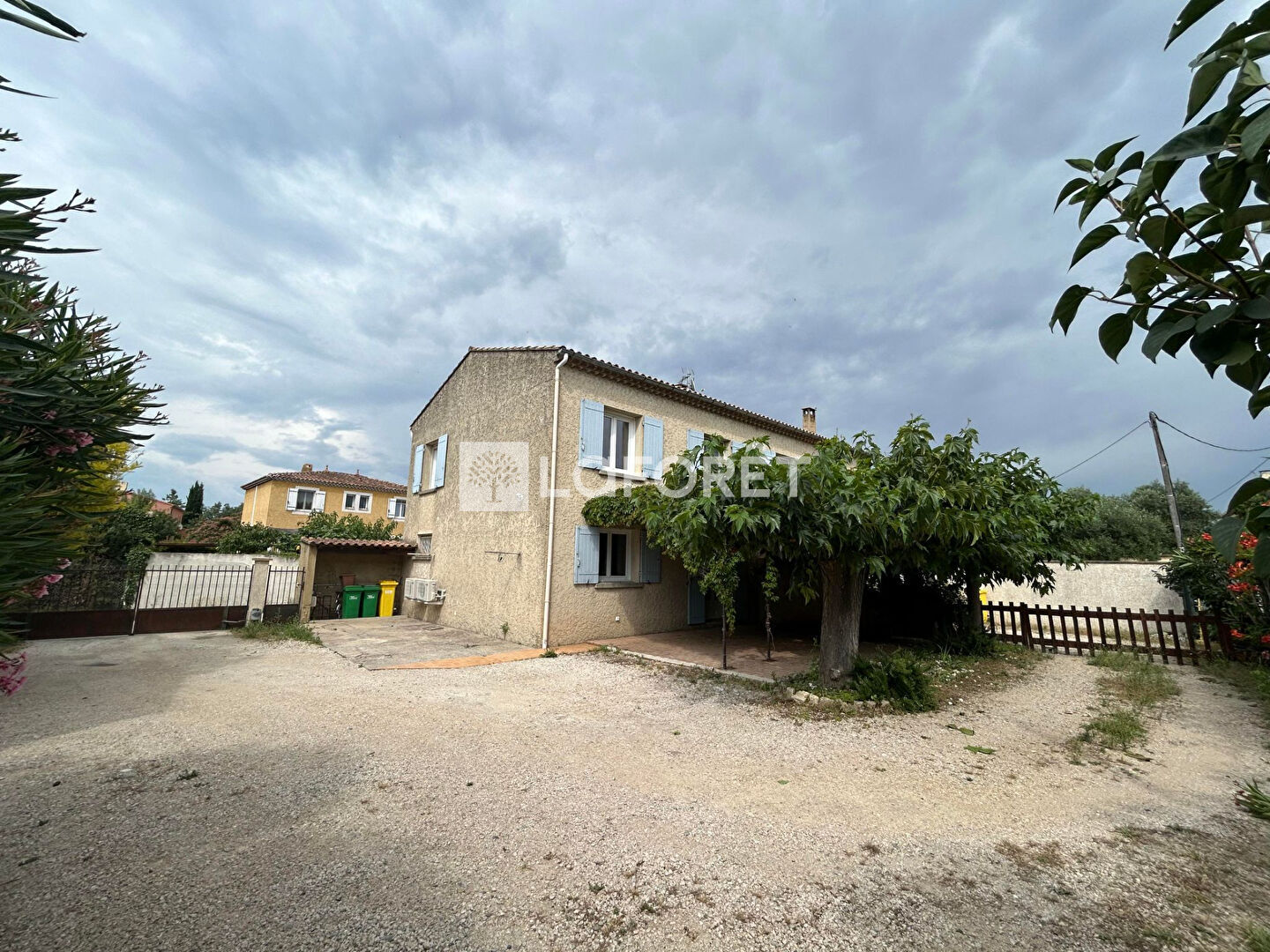 Vous louerez la partie gauche de la maison qui a été découpée en deux. Elle comprend au rez-de-chaussée une pièce de vie climatisée avec cuisine aménagée et équipée d'une hotte, une salle d'eau avec WC et une buanderie. A l'étage : palier avec une chambre et un bureau.