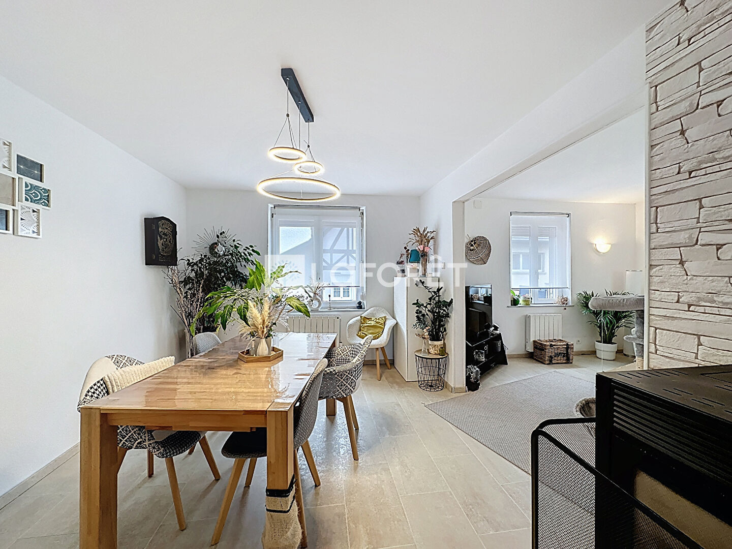 Construite dans les années 1940, ce bien est composé au rez de chaussée d'un double séjour lumineux avec un poêle à granules, communiquant avec une spacieuse cuisine équipée avec un coin repas, une salle d'eau avec WC suspendu et une entrée avec un dégagement. A l'étage, vous disposerez de 3 chambres dont une avec un placard et un palier.