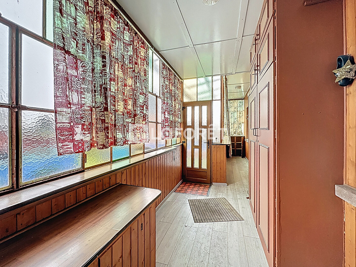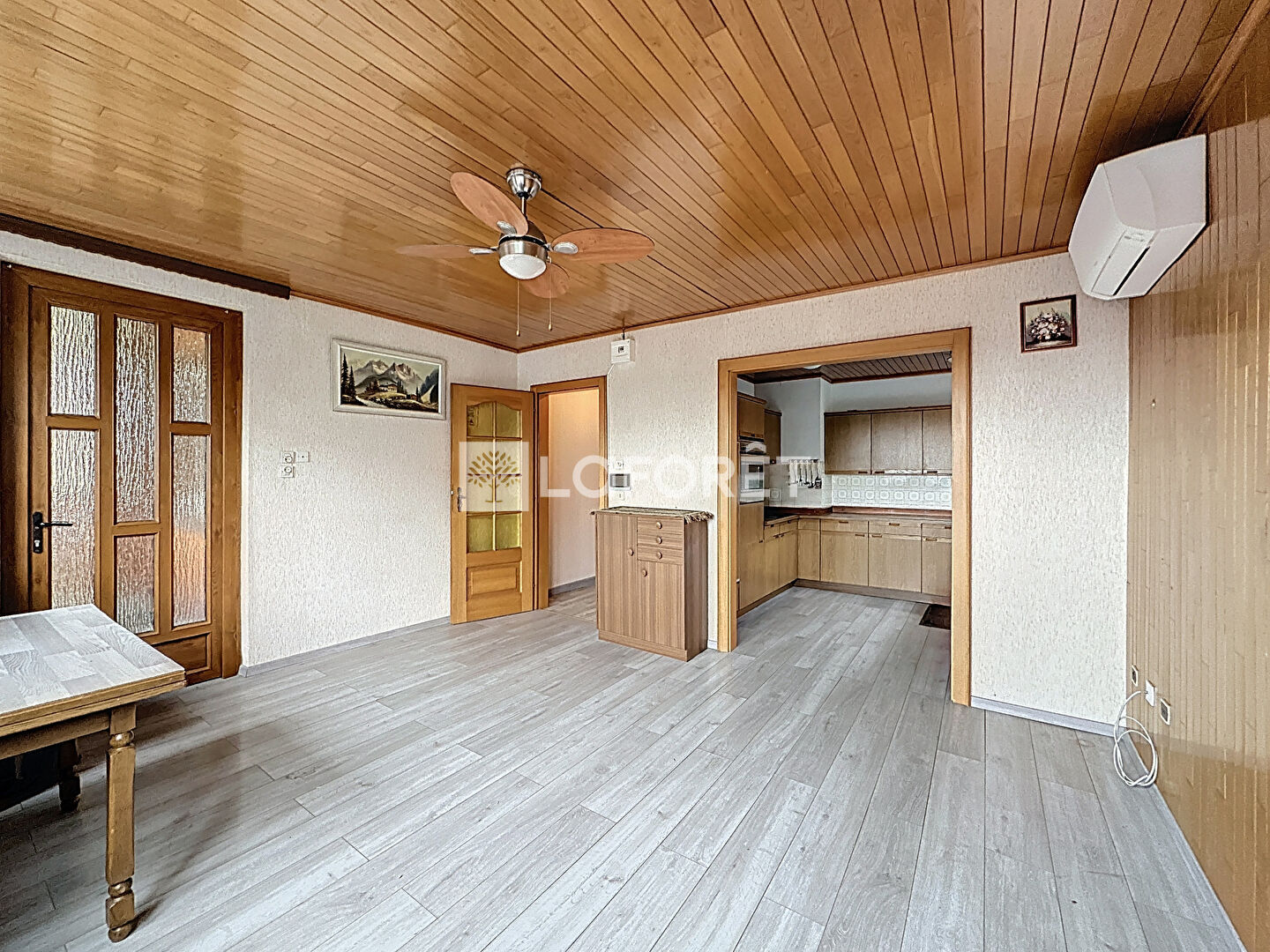 Sur un niveau, elle est composée d'un double séjour de 36 m², une cuisine avec un coin repas de 26 m², 3 chambres dont une avec un placard, une salle de bains avec baignoire et douche, WC séparé, une entrée avec un dégagement et une véranda.