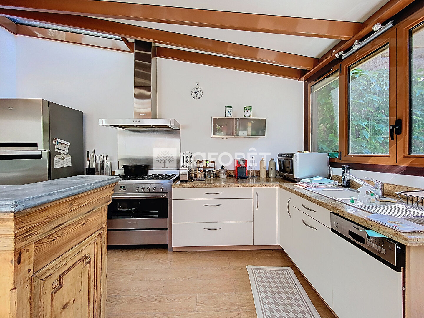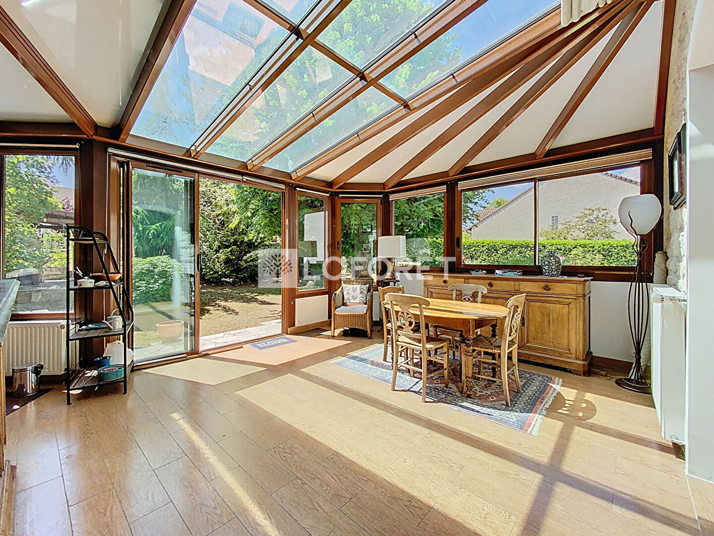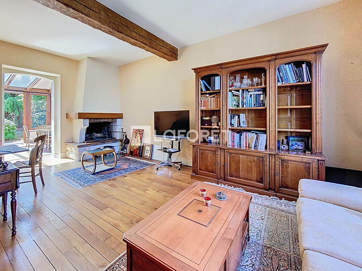 Cette belle demeure vous accueille avec une entrée chaleureuse et un vestibule dédié aux manteaux. Le salon/séjour cosy de 25 m², agrémenté d'une cheminée, invite à la détente. Une vaste véranda de plus de 30 m² exposée SUD offre un espace familial lumineux regroupant la salle à manger et la cuisine.