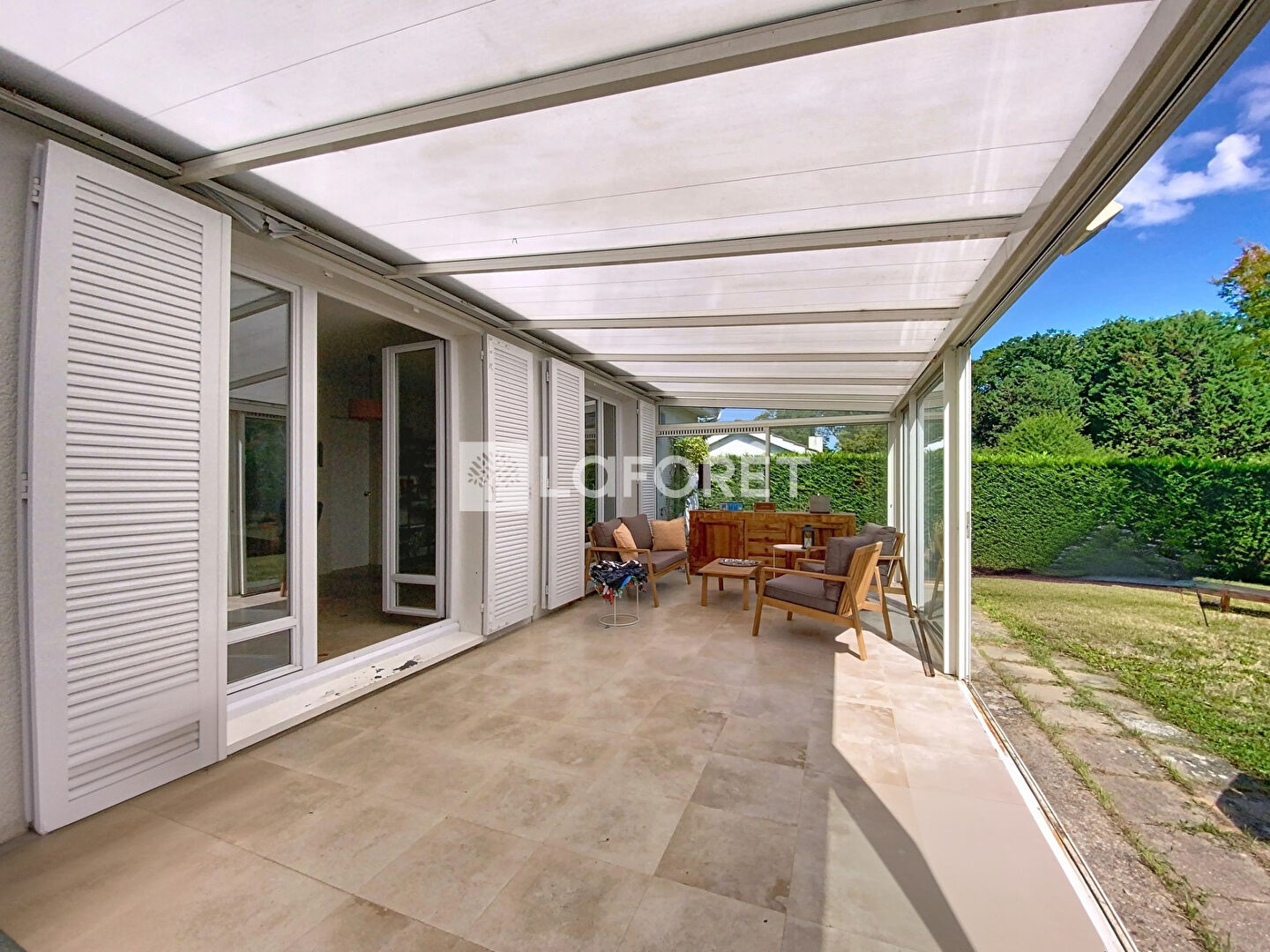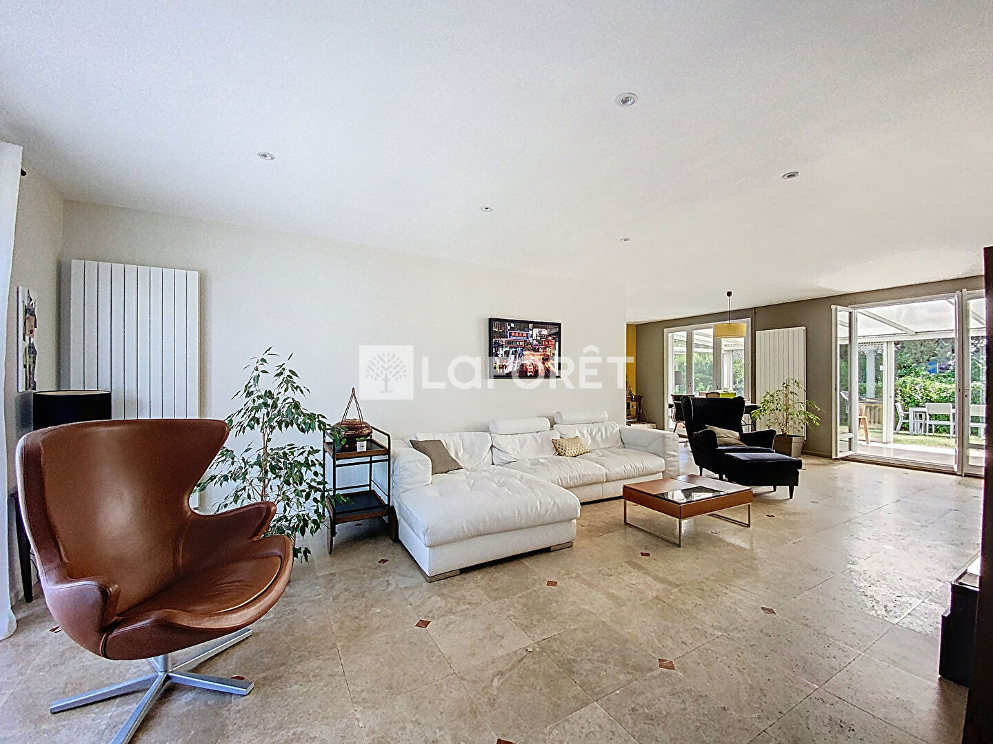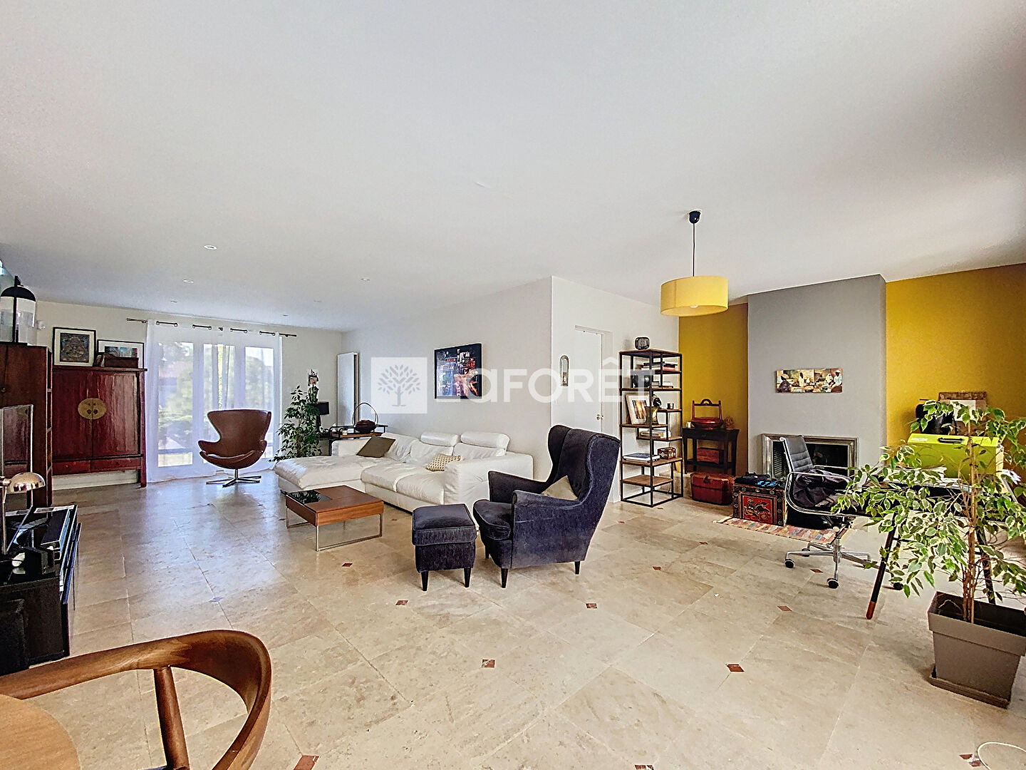 Une vaste pièce de vie lumineuse de plus de 50 m² avec cheminée, ainsi que sa véranda de 30m²,