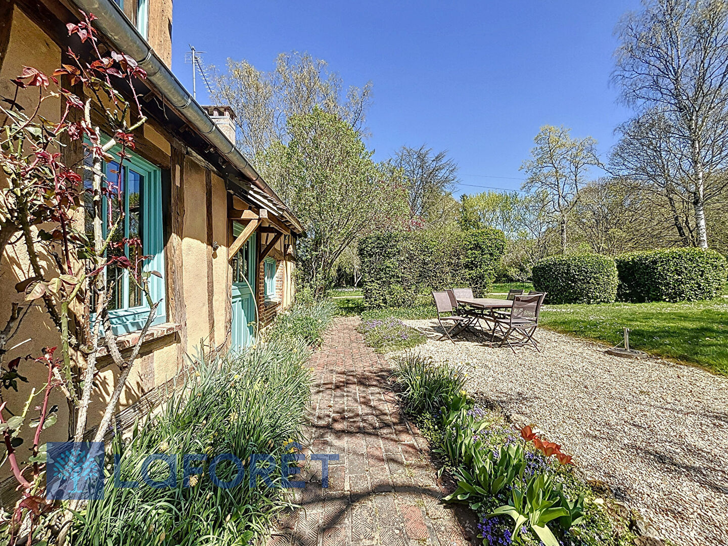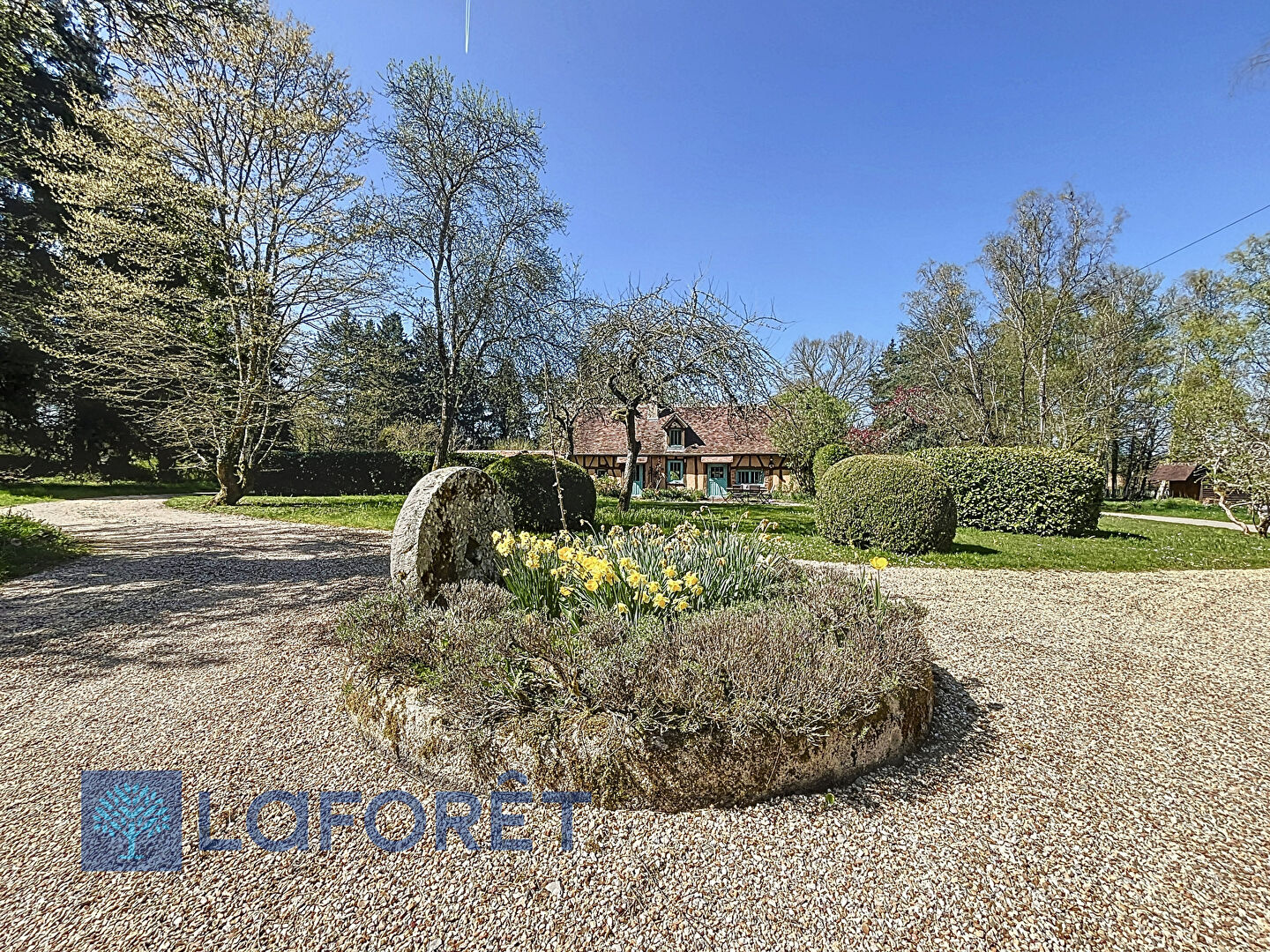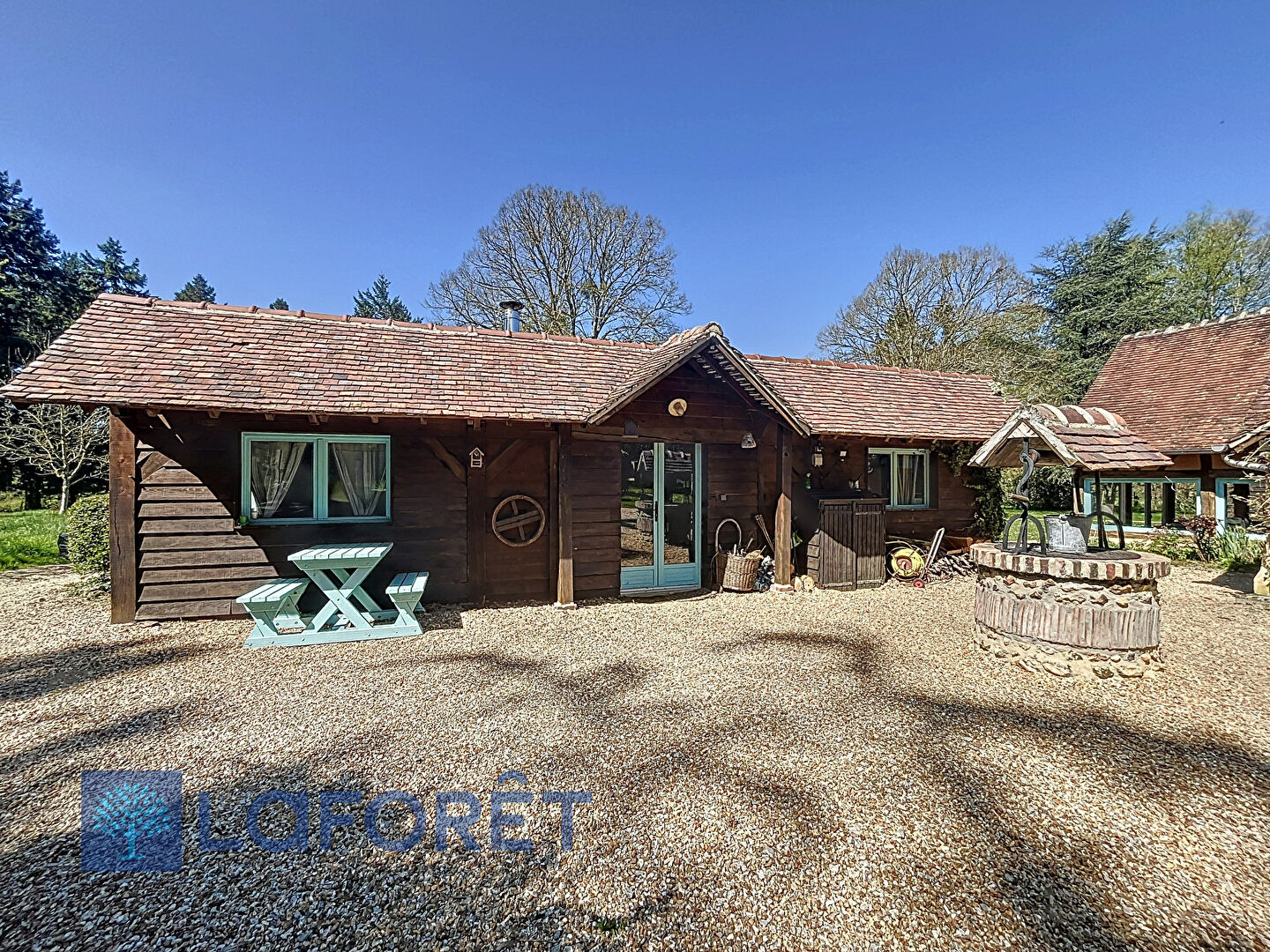 Le jardin, véritable havre de paix sans aucun vis-à-vis, est orné de nombreux arbres, certains pluri-centenaires, ainsi que des parterres de fleurs bénéficiant d'un arrosage automatique et d'un puit. Un tipi en bois invite à la détente et à la contemplation ? imaginez-vous face aux chevreuils, admirant les couchers de soleil, bercé au chant des oiseaux.
