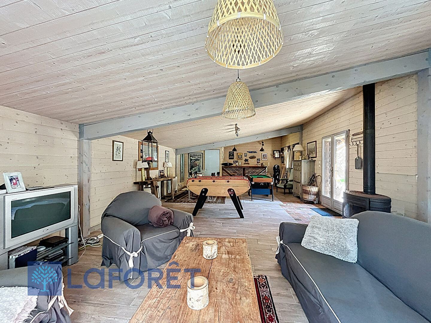 Dès les premiers pas, vous serez séduit par les volumes spacieux et la lumière naturelle qui inonde chaque pièce. Au rez-de-chaussée, un vaste espace de vie s'ouvre sur un salon d'hiver chaleureux doté d'une cheminée, un salon d'été baigné de lumière avec son poêle à pellets, un espace repas convivial et une cuisine aménagée et équipée. Une chambre avec salle de douche et WC privatifs complètent ce niveau, offrant un vrai confort de plain-pied.
