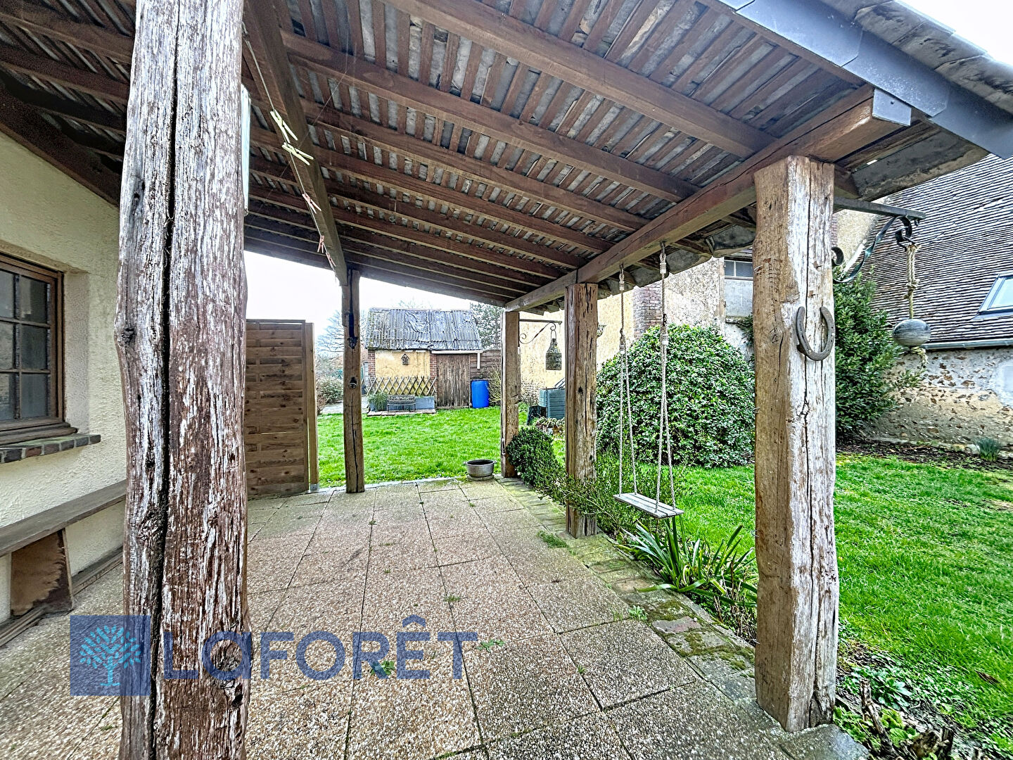 Une petit jardin avant l'avant de la maison et un plus grand espace à l'arrière pour petits et grands avec deux terrasses couvertes ! Maison d'habitation comprenant :