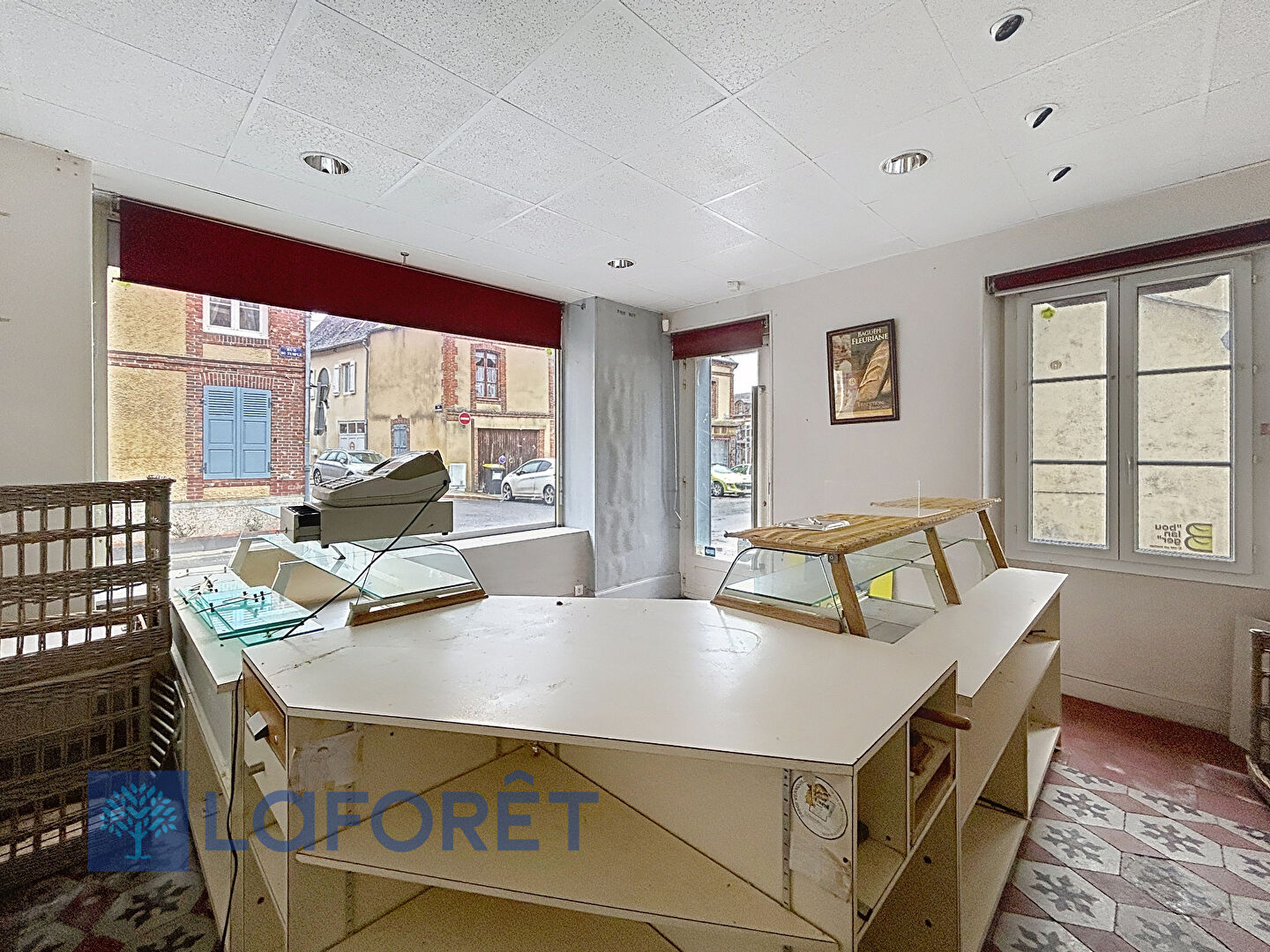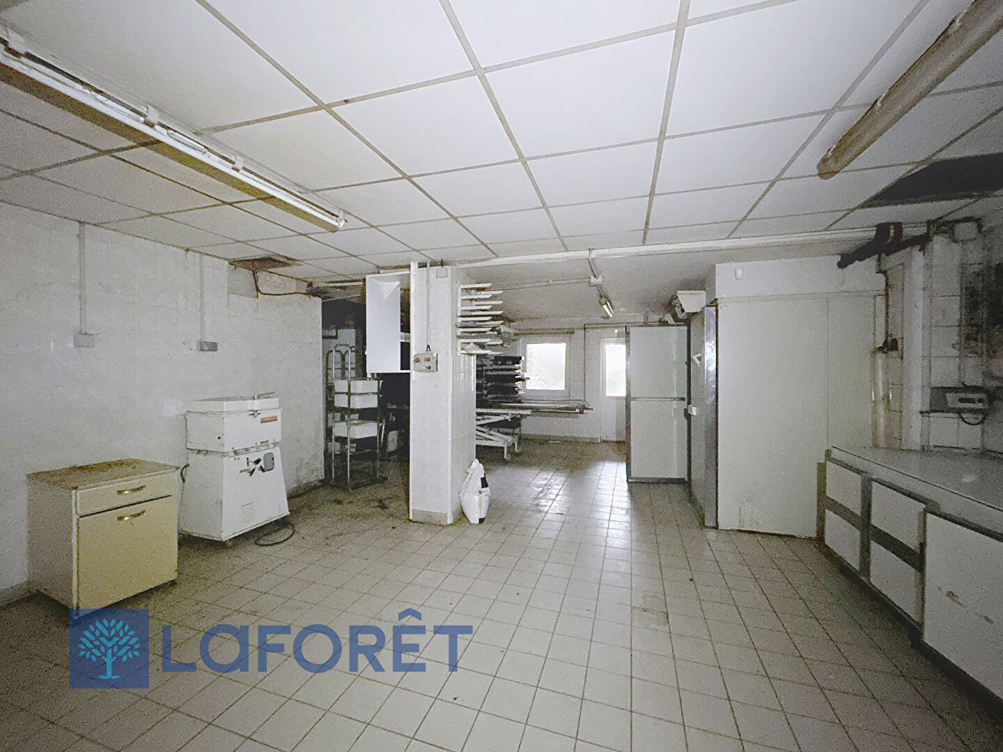 Au rez-de-chaussée : Ancienne boutique de boulanger pâtissier avec vitrine sur rue, Couloir, Cuisine aménagée, Salle à manger, Laboratoire, Réserve et vestiaire,
