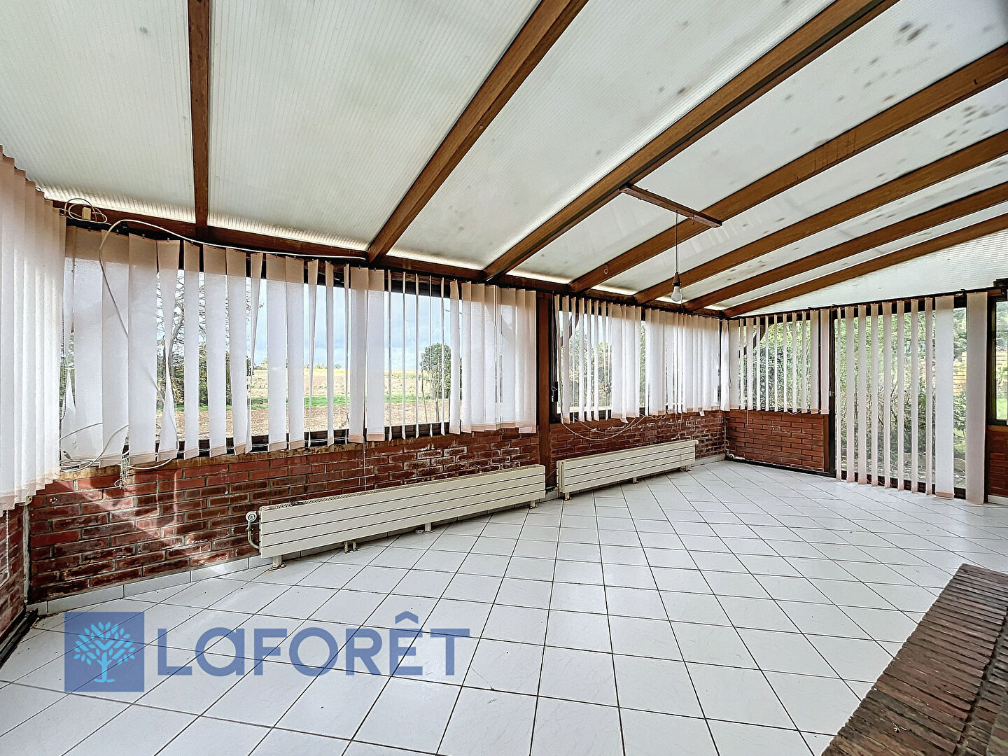 Grange en toit cathédrale, tomette ancienne, poutres, charpente apparente, mur en pierre piqueté, cuisine neuve, buanderie et grande véranda avec vue sur les champs !