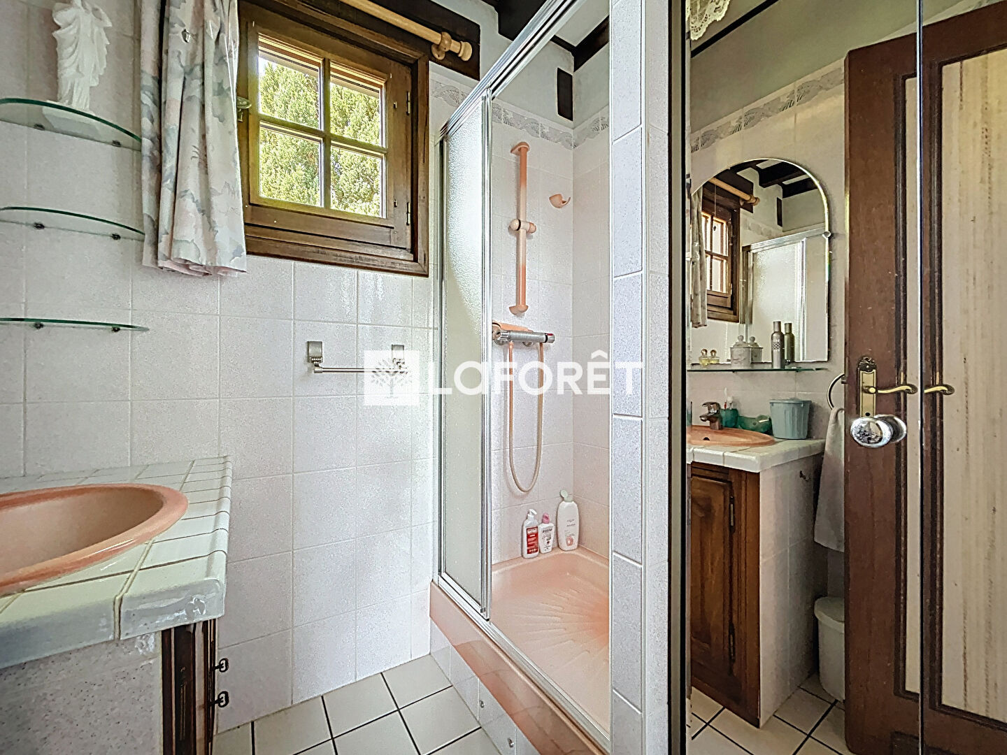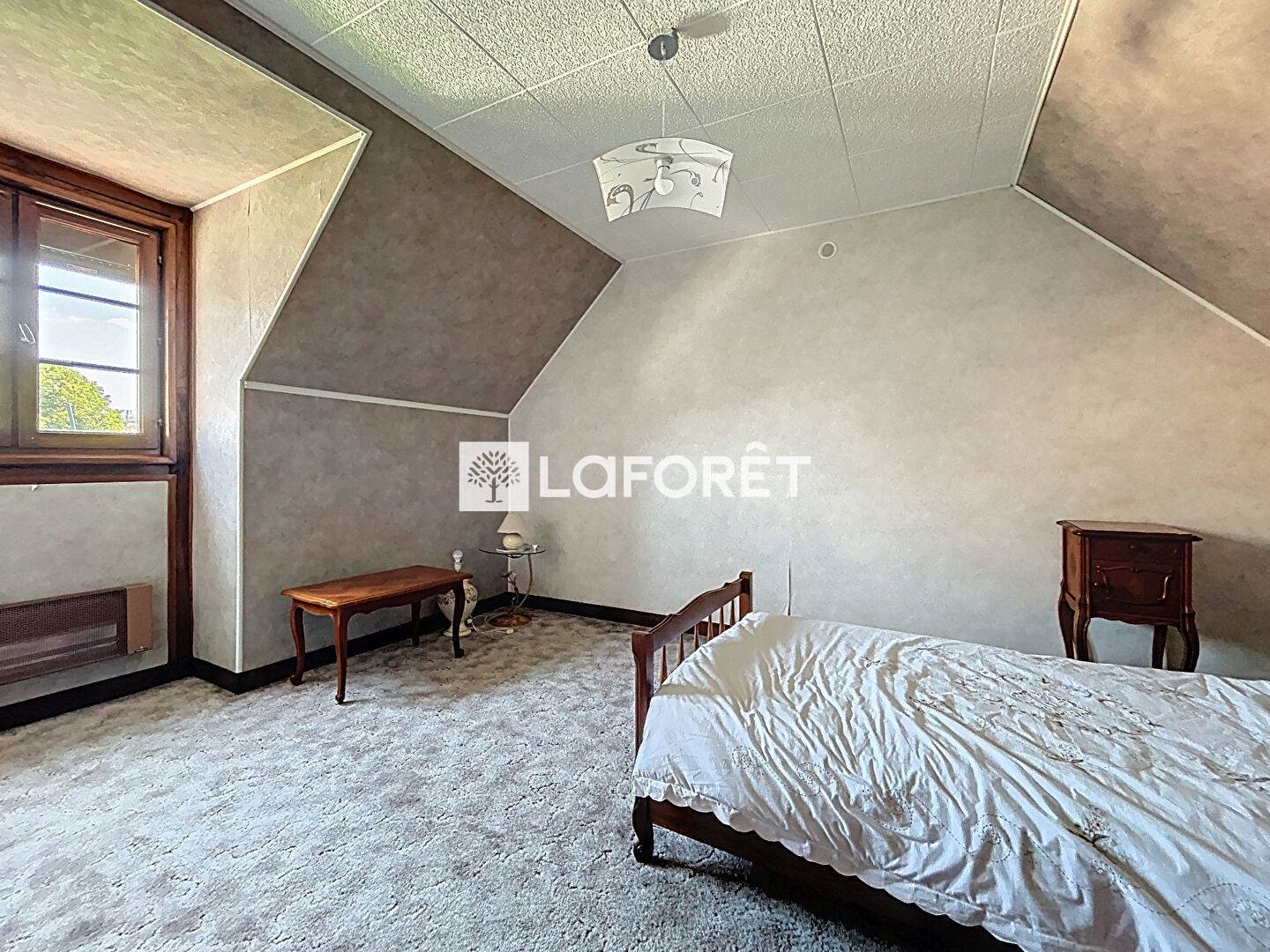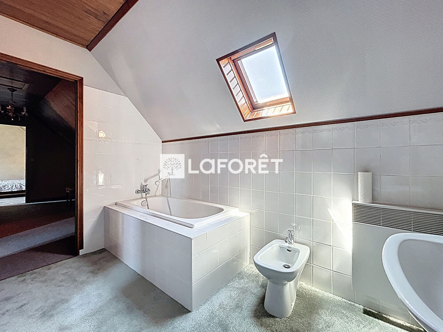 A l'étage palier desservant deux grandes chambres et une salle de bains avec wc. Sous sol. Tout à l'égout.