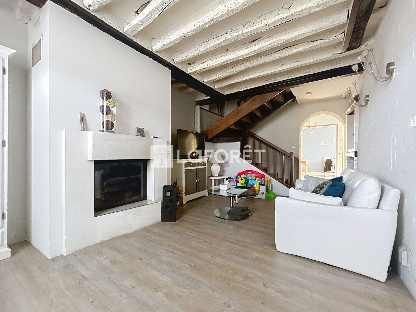 Entrée, séjour avec cheminée insert, cuisine aménagée ouverte, wc séparé.
